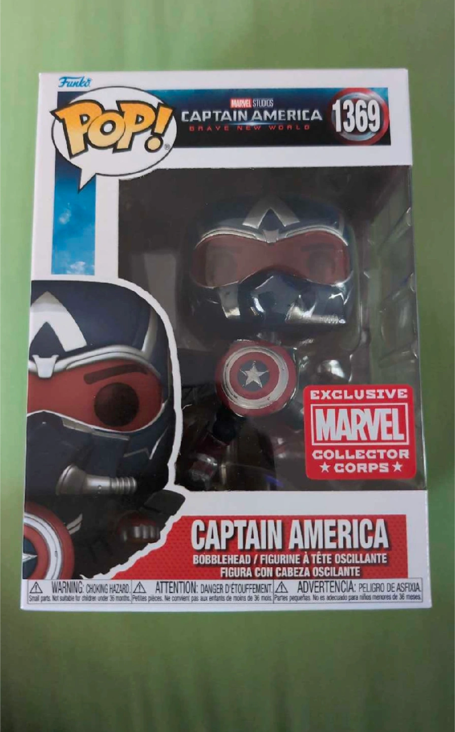 91I'm selling a brand new, in-box Funko Pop! Marvel Collector Corps Exclusive Captain America (Brave New World) #1369 bobblehead figure. This exclusive item is perfect for any Marvel fan or Funko collector, featuring Captain America in a unique design. It's just waiting to leap from the shelf of this humble abode to your collection. If the ad is up, yes, it's still available!