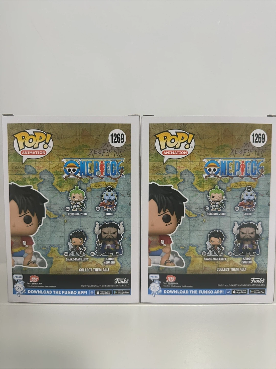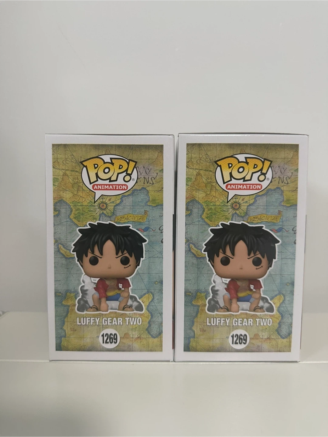 Selling two Funko Pop! Animation figures of One Piece's Luffy Gear Two, figure number 1269! Perfect for any One Piece fan or Funko Pop collector Selling as Bundle Comes with protector for each item Only for sale, not looking for trades of any items. Thank you!