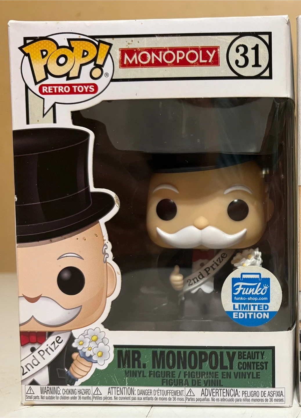 26Selling a Funko POP! Retro Toys Monopoly Mr. Monopoly #31 figure. It's a limited edition vinyl figure of Mr. Monopoly in a beauty contest theme.