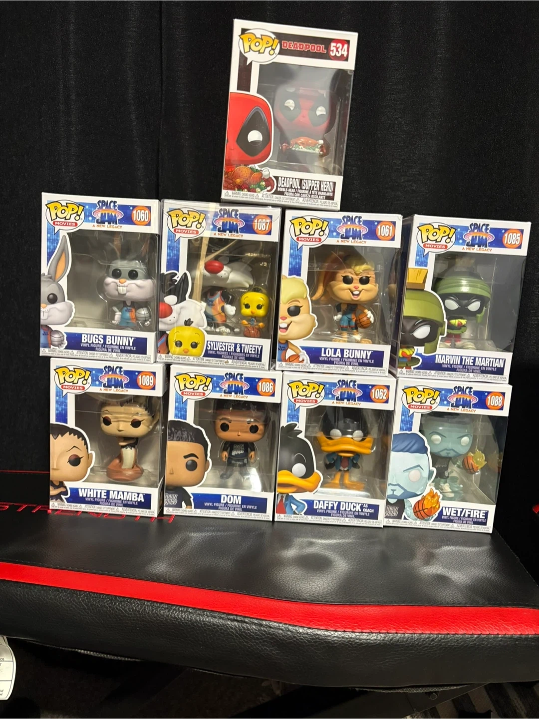 10Selling a collection of Funko POP! figures from Space Jam 2: A New Legacy! Available characters: - Bugs Bunny (1060) - Sylvester & Tweety (1087) - Lola Bunny (1061) - Marvin the Martian (1085) - White Mamba (1089) - Dom (1086) - Daffy Duck Coach (1062) - Wet/Fire (1088) - Deadpool (Supper Hero) (534) Each figure is a vinyl collectible and comes in its original box $5-$15
