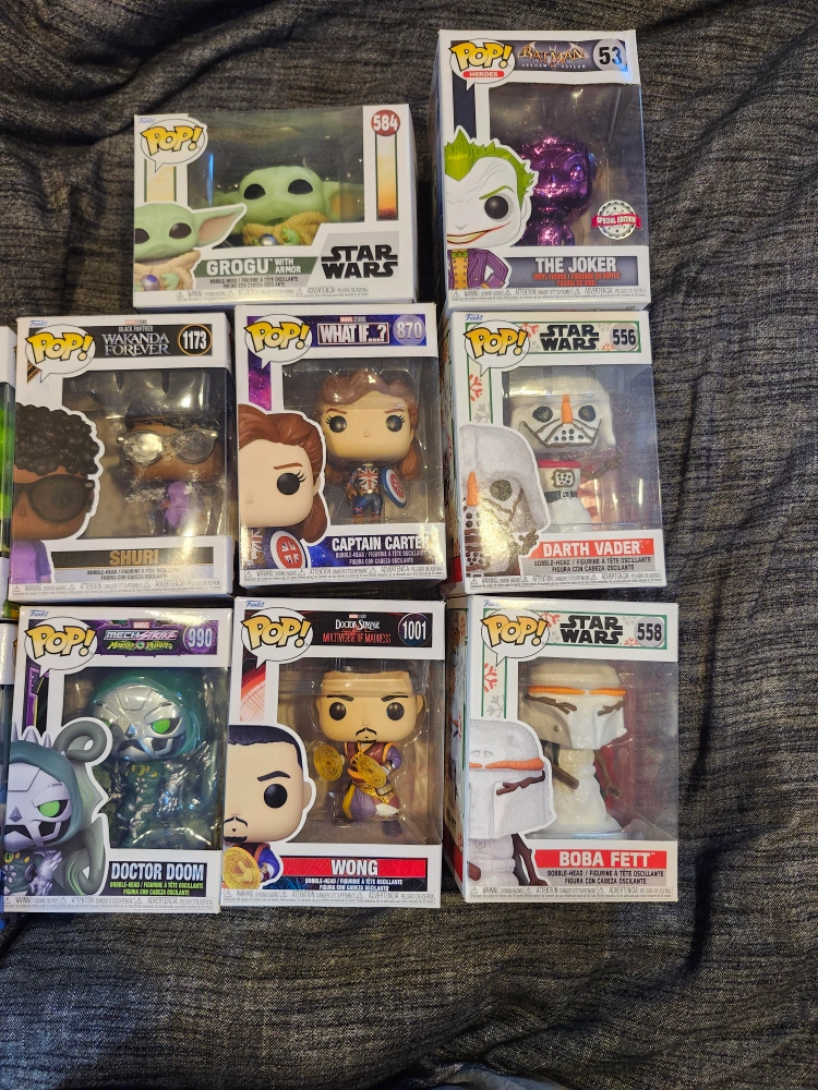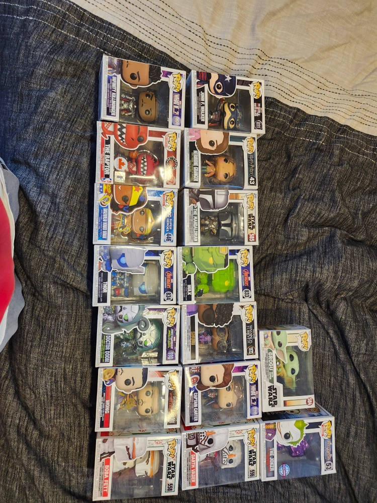 10Selling a collection of Funko Pop! vinyl figures. All are in their original boxes and in great condition. A variety of characters are available, including Star Wars, Marvel, DC, and more! Perfect for collectors or fans of these franchises