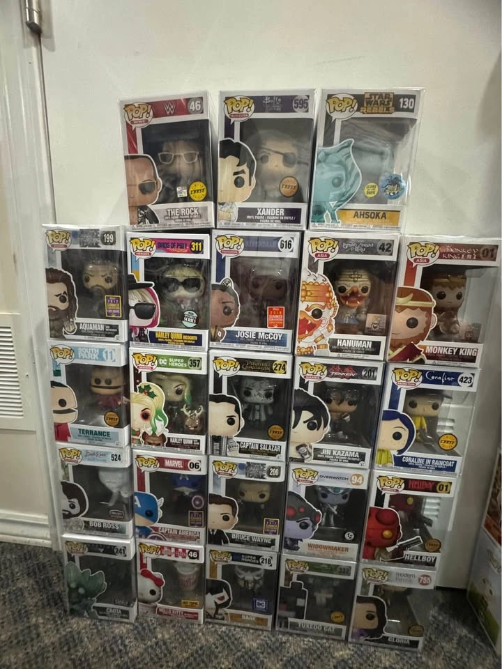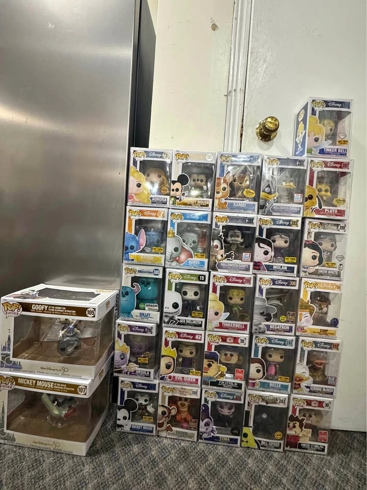 15Hi I’m Selling all of our collections Please read descriptions for more details. Only pick up on Square One During Saturdays and Sundays. at Empress Walk on Weekdays. Trading also For One piece Funko Pops! We can work on a deal for Multiple Funkos. Disney: - Funko Pop! Disney #10 Tinker Bell Diamond Edition Hot Topic W/Protector - $20 - Funko Pop! Disney Pluto 287 Disney Treasures Exclusive W/Protector- $20 - Funko Pop! Disney Snow White and the Seven Dwarfs Diamond/Glitter Hot Topic #350 W/Protector - $20 - Funko Pop! Vinyl: Disney Chip Blowing Bubbles #794 Beauty and the Beast PIAB exc W/Protector - $25 - Funko Pop! Disney Scrooge McDuck 312 NYCC 2017 Exclusive Duck Tales w/Protector - $25 - Funko Pop! 8-Bit Disney Wreck-It Ralph #30 2018 Summer Convention Vinyl Figure w/protector - $25 - Funko Pop! Halloween Donald #268 Fall Convention Exclusive 2017 Kingdom Hearts - $25 - Funko Pop! Vinyl: Movies: Disney - Mulan #323 Diamond glitter Hot Topic Exclusive W/ Pop Protector - $25 - Funko Pop! Disney: Negatron #300 2017 Sumer Convention SDCC w/Protector - $25 - FUNKO POP! DISNEY BELLE #241 HOT TOPIC EXCLUSIVE DIAMOND COLLECTION W/PROTECTOR - $20 - Funko Pop! CHASE Gravity Falls - Bill Cipher (Cosmic) #243 Figure w/ Protector - $35 - Funko Pop! Disney Bambi # 351 Disney Treasures Exclusive Vinyl Figure -$20 - Funko Pop ! Disney Halloween Goofy #269 Kingdom Hearts 2017 NYCC Exclusive - $40 - Funko Pop! Disney - Tinkerbell #295 - Disney Treasure Exclusive -$30 - Funko Pop! Disney Wreck-it Ralph: Fix-it Felix #31 - $20 - Funko Pop! Vinyl: Disney - Yzma (Glow) (Chase) #359 -$30 - Funko Pop! Vinyl: Disney - Mickey Mouse #1307 - $15 - Funko Pop! Disney Dumbo #50 Diamond Collection Hot Topic Exclusive -$25 - Funko Pop! - Disney Nightmare Before Christmas Jack Skellington Hot topic #15 -$20 - Funko Pop! Vinyl: Disney: Snow White - Evil Queen #42 Diamond Glitter Hot TopicExclusive W/ Protector - $25 - Funko Pop! Tigger Winnie The Pooh (Flocked) 2017 Summer Convention Exclusive #288 -$50 - Funko Pop! Vinyl #325 Disney Aurora Blue Dress Sleeping Beauty Limited Chase-$25 - Funko Pop! Disney Lilo And Stitch #159 Diamond Stitch Hot Topic Exclusive -$30 - Funko Pop! Vinyl: Disney Monsters - Sulley (Flocked) #385 (Amazon Exclusive) -$20 - Funko Pop! Vinyl: Disney - Ursula - (Glitter) - Hot Topic (Exclusive) #231 -$30 - Funko Pop! Disney Mickey Mouse #01 Diamond Collection Hot Topic Exclusive- $20 - FUNKO POP! # 105 - GOOFY AT THE DUMBO THE FLYING ELEPHANT ATTRACTION DISNEY 50 -$40 - Funko Pop! Disney Mickey Mouse At The Space Mountain Attraction #107 Figure - $30 Random Funko Pops: - Funko Pop! Television The Umbrella Academy Number Five #932 Limited Chase Edition -$30 - Funko POP! 8-Bit Megaman Black Hole Bomb E3 2018 13 Vinyl Figure -$15 - Funko Pop! Figure Hello Kitty #44 Hello Kitty Mecha - $30 - Funko Pop! Royals Diana Princess of Wales Vinyl Figure #03 Red Dress CHASE Figure - $40 - Funko Pop! Vinyl: Conan O'Brien (Suit) - GameStop (Exclusive) #20 -$20 - Funko Pop! Vinyl: Hello Kitty (8-BIT) #31 CHASE 40th Anniversary Figure-$40 - Funko Pop! #15 Street Fighter Ryu, CHASE, GameStop Exclusive + Protector -$30 - Funko Pop! Heroes #190 Batman Animated Series Mr. Freeze DC Exclusive -$30 - Funko POP! Games Cuphead #313 King Dice E3 2018 Limited Edition -$30 - Funko Pop! Vinyl: Kevin Smith - Hot Topic (Exclusive) #483 -$20 - Funko Pop! Beast Man Flocked #539 Official 2017 NYCC - Masters of the Universe -$30 - Funko POP! CONAN #19 Conan O’Brien Game Stop Exclusive -$20 - Funko Pop! DC Super Heroes Hot Topic Superman from Flashpoint (Chase) #251 -$30 - Funko Pop! Vinyl: John Wick - John Wick (Bloody) (Chase) #387 - $60 - Funko Pop! Vinyl: DC Universe - Harley Quinn #413 - Super Heroes/ Villains -$20 - Funko Pop! Vinyl: WWE - Ted "The Million Dollar Man" Dibiase (Chase) #41 - $60 - Funko Pop! #14 Mortal Kombat Raiden, Gamestop Exclusive GLOW CHASE + Protector - $60 - Funko Pop! Heroes DC Super heroes Nightwing Vinyl Figure #202 -$40 - Funko P