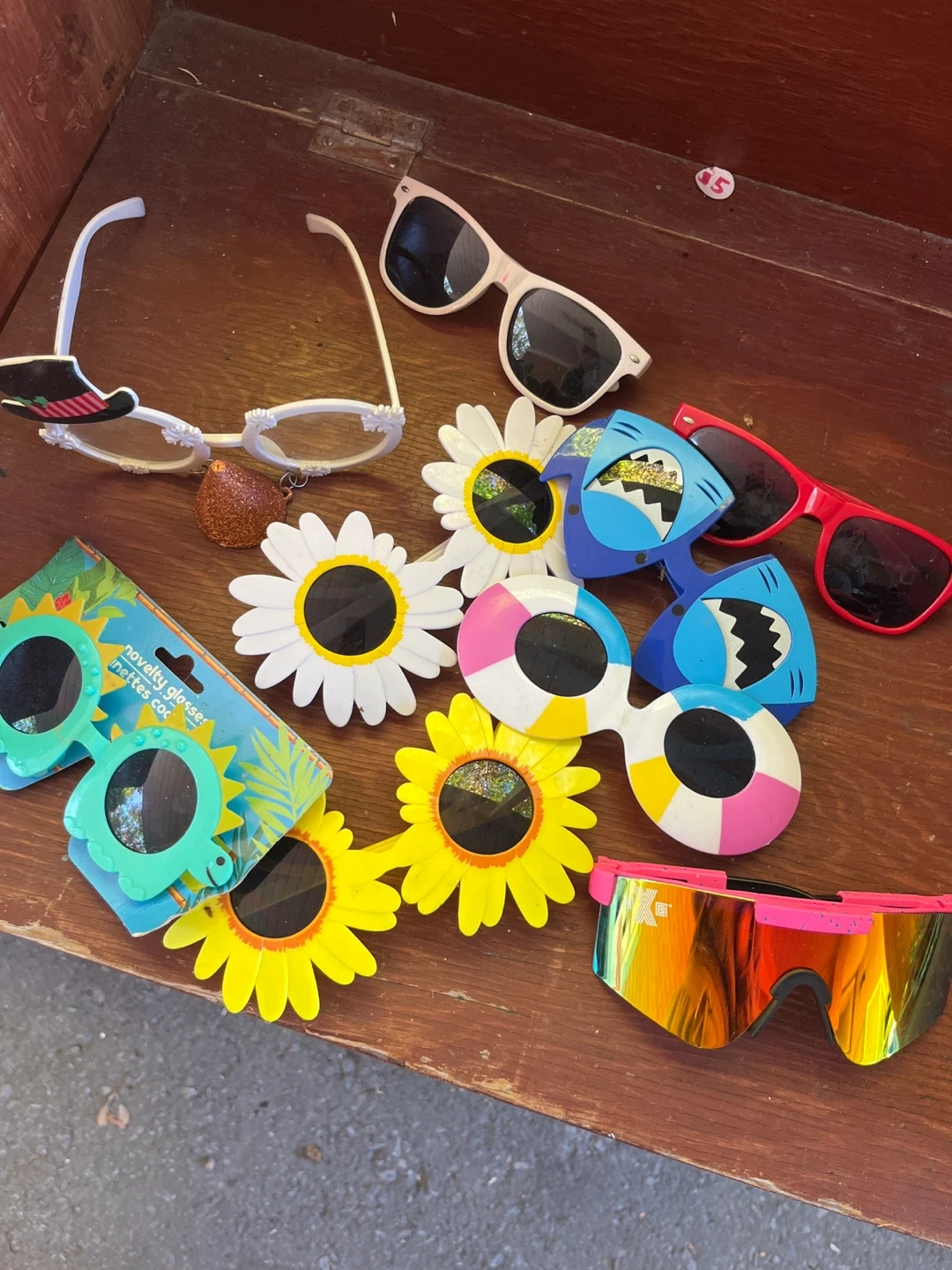 Selling a bunch of fun and funky sunglasses! Great for parties, costumes, or just adding a little flair to your day. There's a variety of styles. $2 each or have the whole lot for $10!!