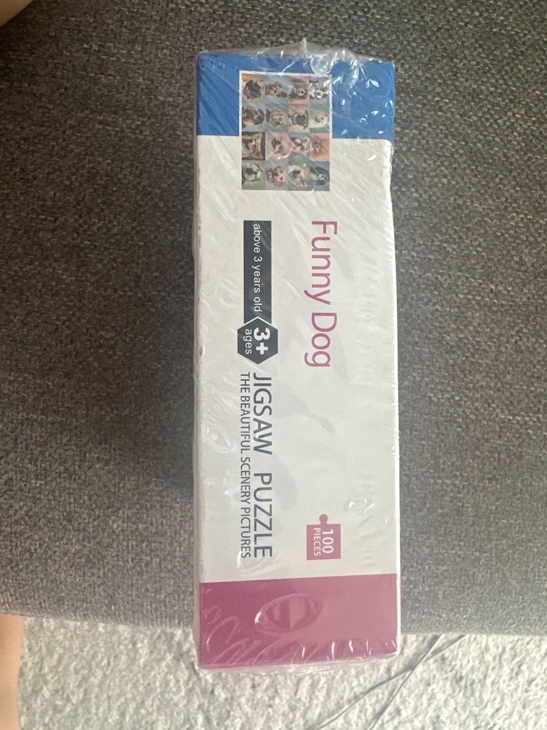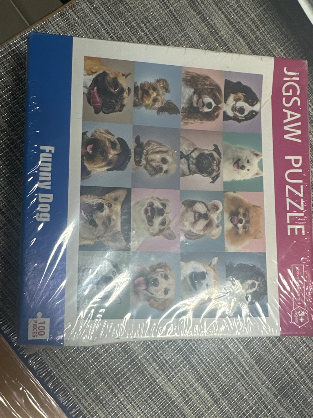 Selling a brand new, sealed Funny Dog jigsaw puzzle! It has 100 pieces and features a bunch of cute dog pictures. Recommended for ages 3+
