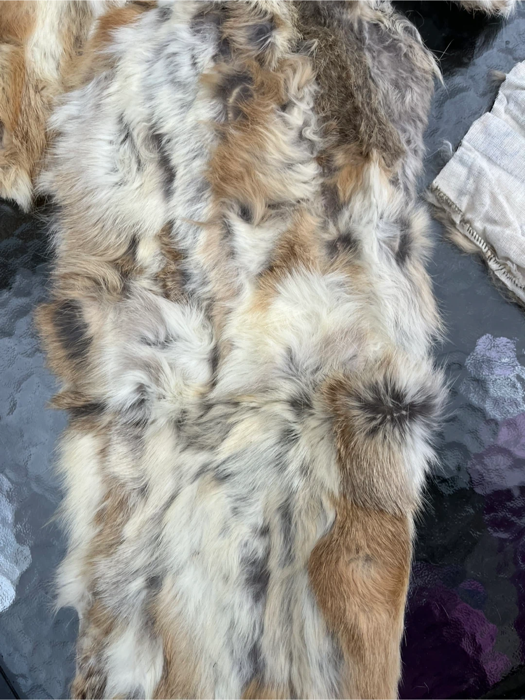 96Selling these fur pieces, perfect for your craft projects! The fur has a mix of natural tones, including brown, white, and grey.