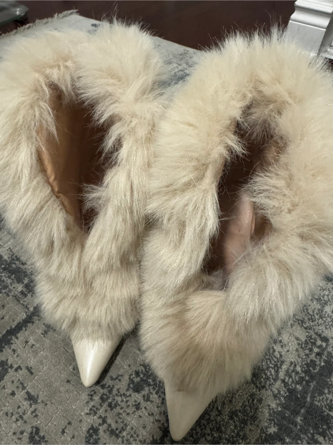 555These unique heels are sure to make a statement! They feature a pointed toe and a fun fur trim. Size 6 In very good condition $20 Yonge and finch area