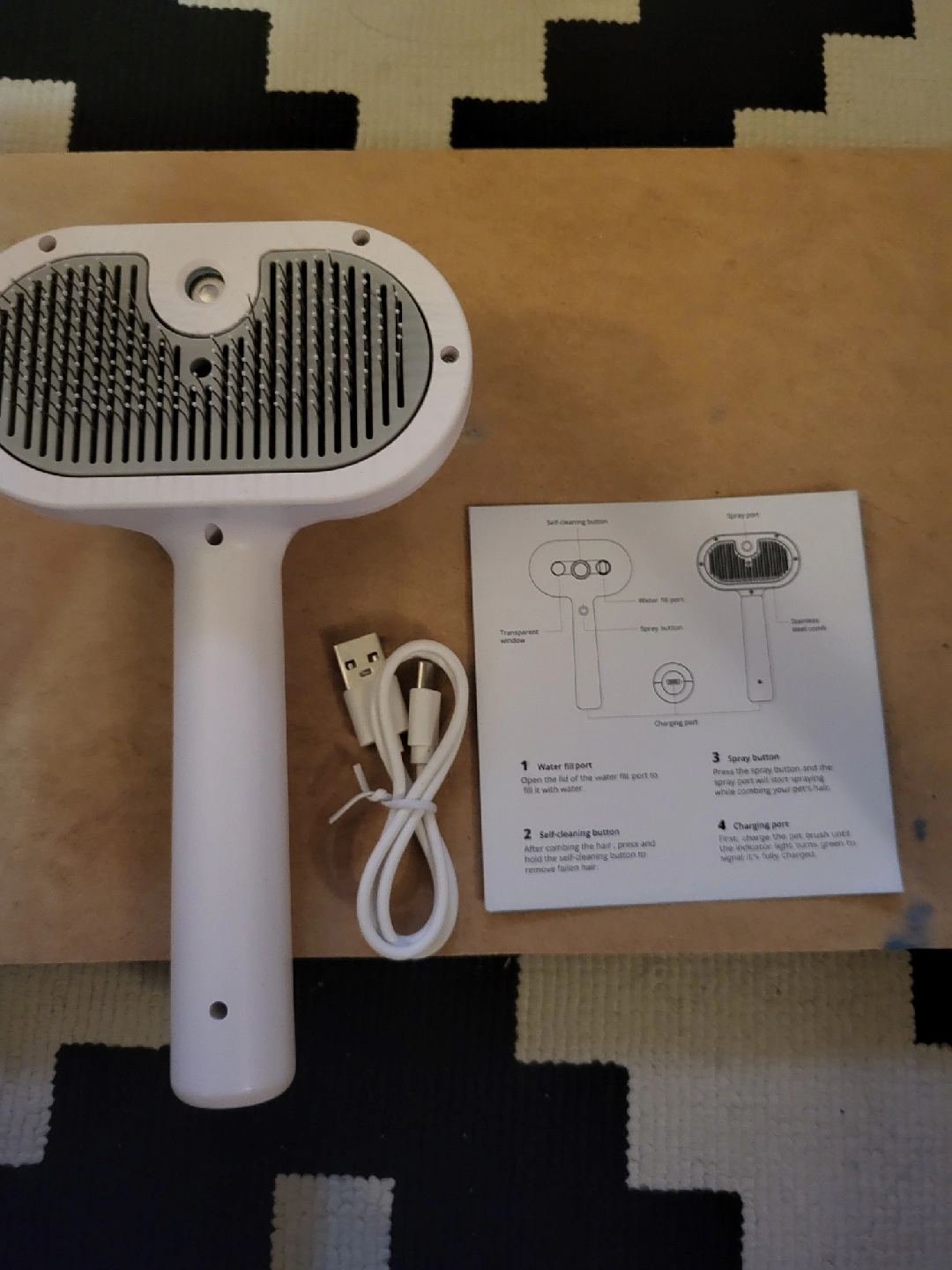 903Groom your furry friends with this Furgo Steam Pet Brush! It helps get rid of fuzz and is eco-friendly. The brush has a self-cleaning button and a spray function. It also comes with a charging port and a USB cable. like new in box!