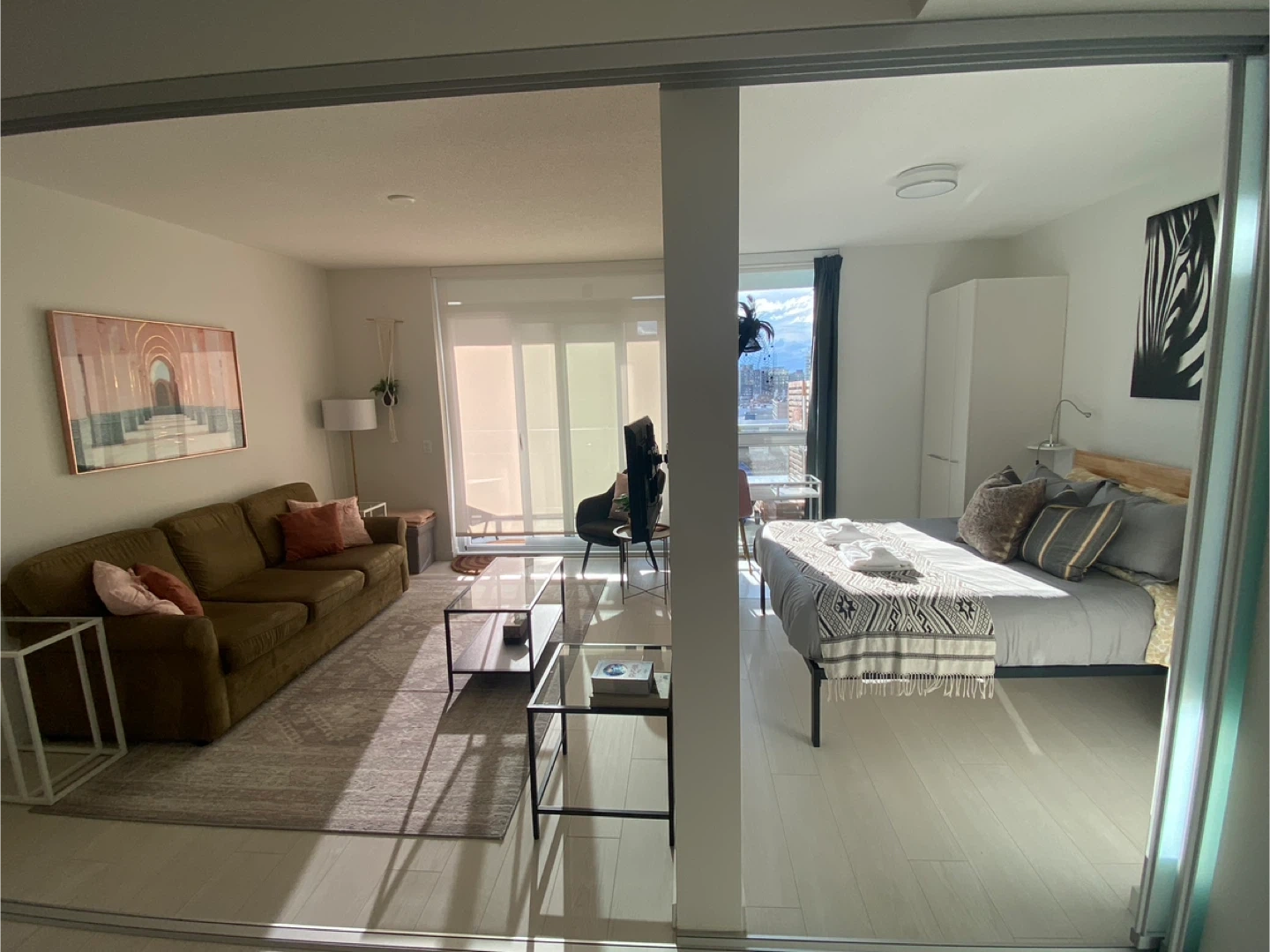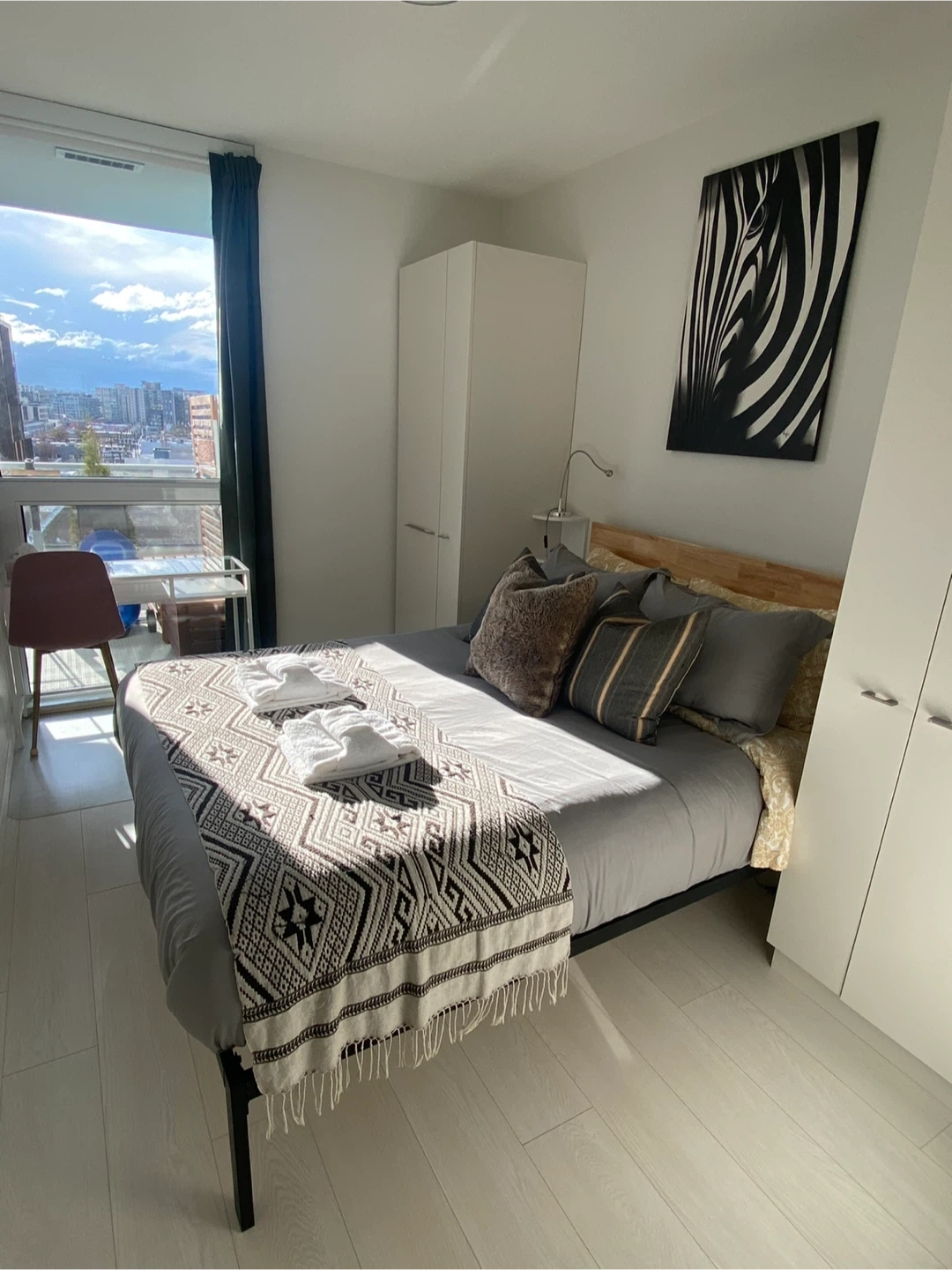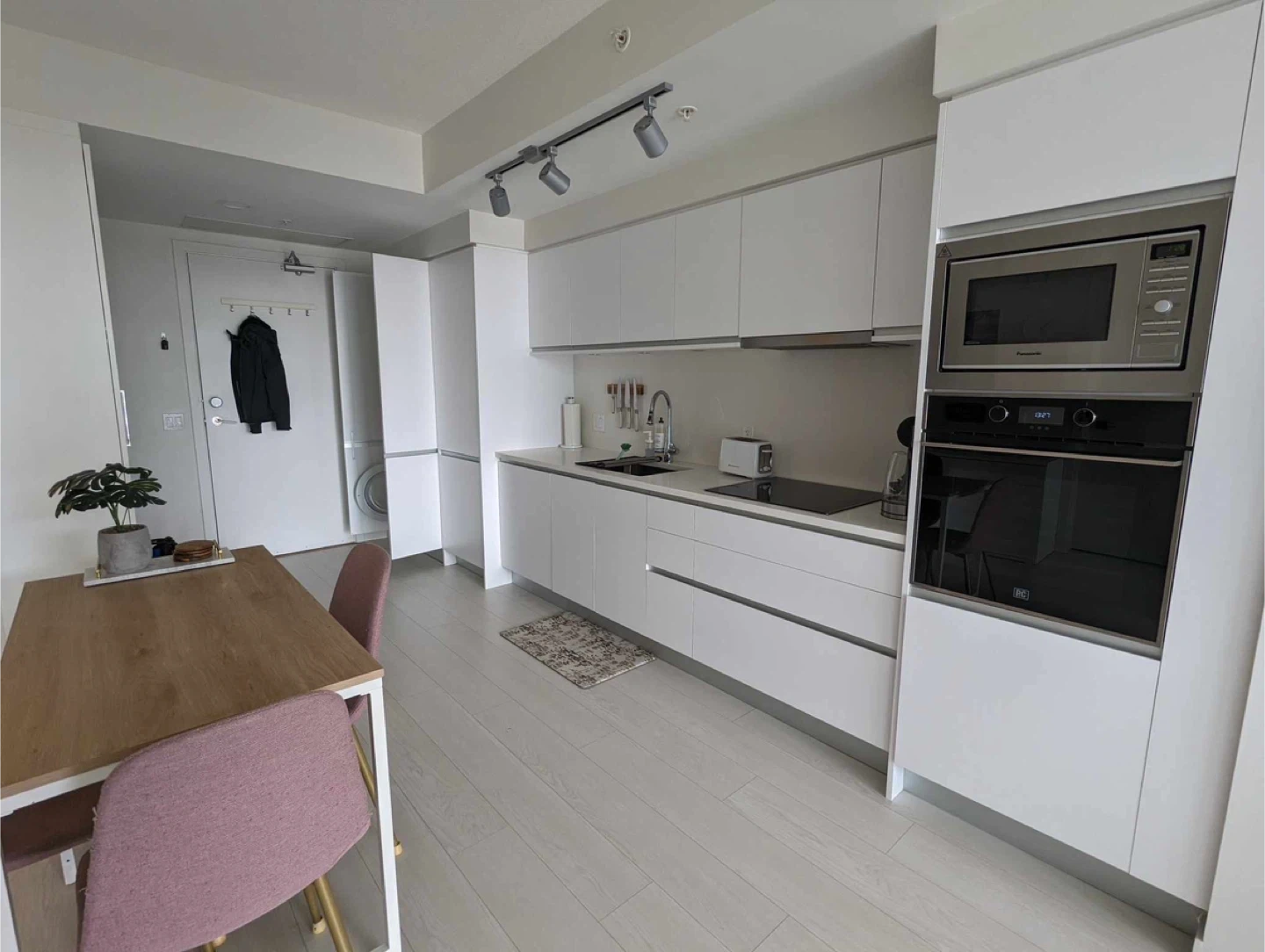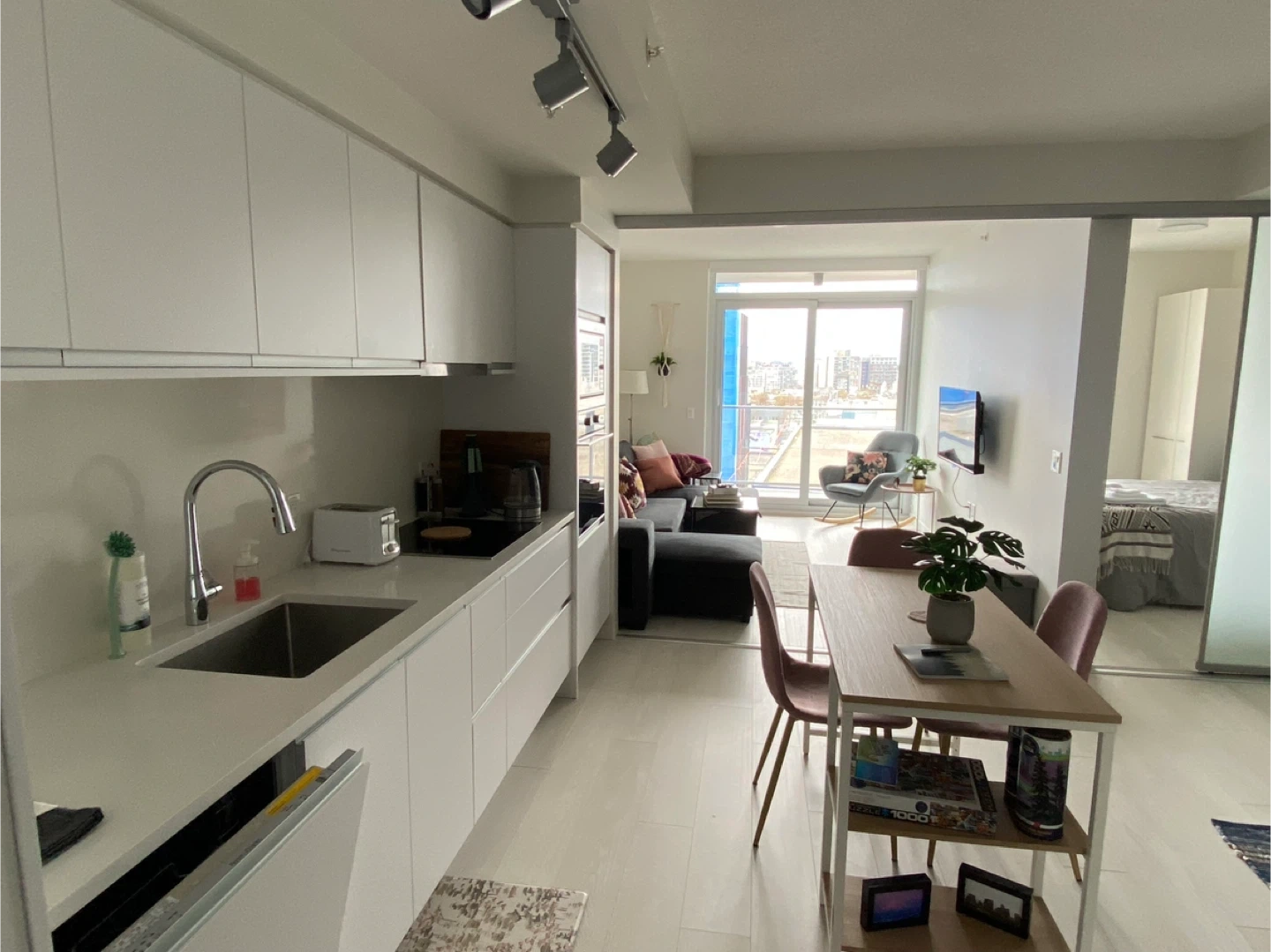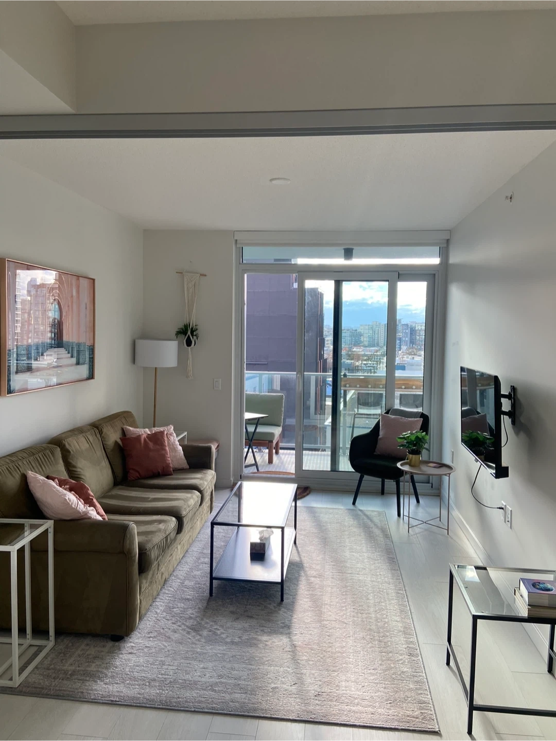 Clean and spacious fully furnished 2-bedroom (1BR + flex) condo in Mount Pleasant/Olympic Village, perfect for professionals or couples with pets looking for a flexible short- to medium-term rental option. Pet-friendly: Cats and dogs welcome - close to parks and the Seawall. Parking included: Secure underground stall. All utilities and high-speed internet included. Monthly cleaning service provided. Completely furnished: Bedding, linens, towels, cookware, utensils, spices - everything you need, just bring your suitcase. Modern building built in 2021 with amenities like a gym, rooftop patio, air conditioning, and in-suite laundry. Excellent location at Main & 2nd - walk to SkyTrain, cafes, restaurants, breweries, and shops. Available from Oct 23 (flexible). Fixed-term lease: 3-6+ months - flexible dates available through April or May 2026. Rent: $2,995 per month - all inclusive. About the condo: 598 sq ft of well-designed and bright space with sliding glass doors that can separate the living room for added privacy - great for guests or as a second sleeping area. Living room includes a sofa bed and TV. Bedroom features a queen bed, small desk, and two large wardrobes. Flex room has a Murphy bed with built-in desk, perfect for a home office during the day and a guest room when needed. Fully equipped kitchen with an induction cooktop, oven, dishwasher, kettle, toaster, stick blender, pots, pans, dishes, and cutlery. Large west-facing balcony for morning coffee or sunset views, central A/C for year-round comfort. Ideal for relocations, film or production professionals, visiting academics, or individuals in need of a fully equipped, pet-friendly space in one of Vancouver's most walkable neighborhoods. To inquire: Please provide your move-in date, desired lease term, information about yourself/pets, and contact email or phone number for scheduling.