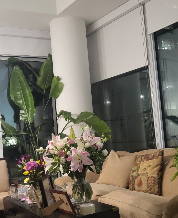 14Beautiful large beige sofa, 80" long, fabulous design. Comes with cushions, $200. Small table lantern with LED fairy lights and flowers $15. Hand crafted accent mirrors 32" $40.