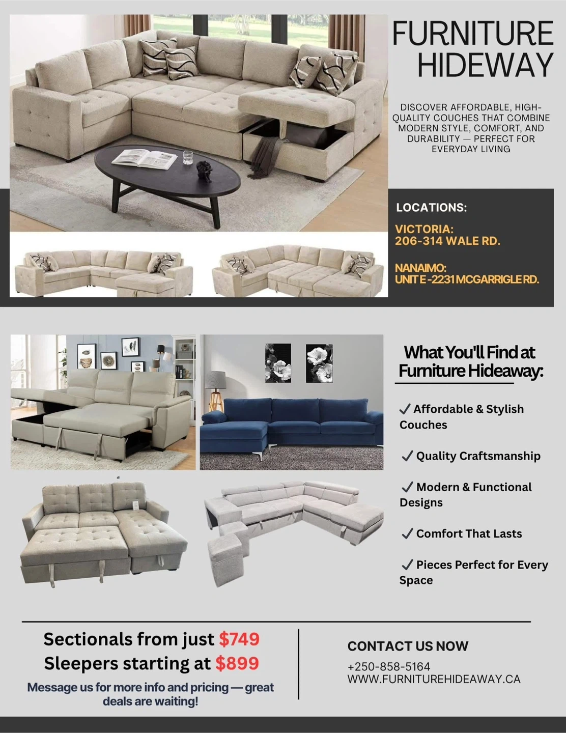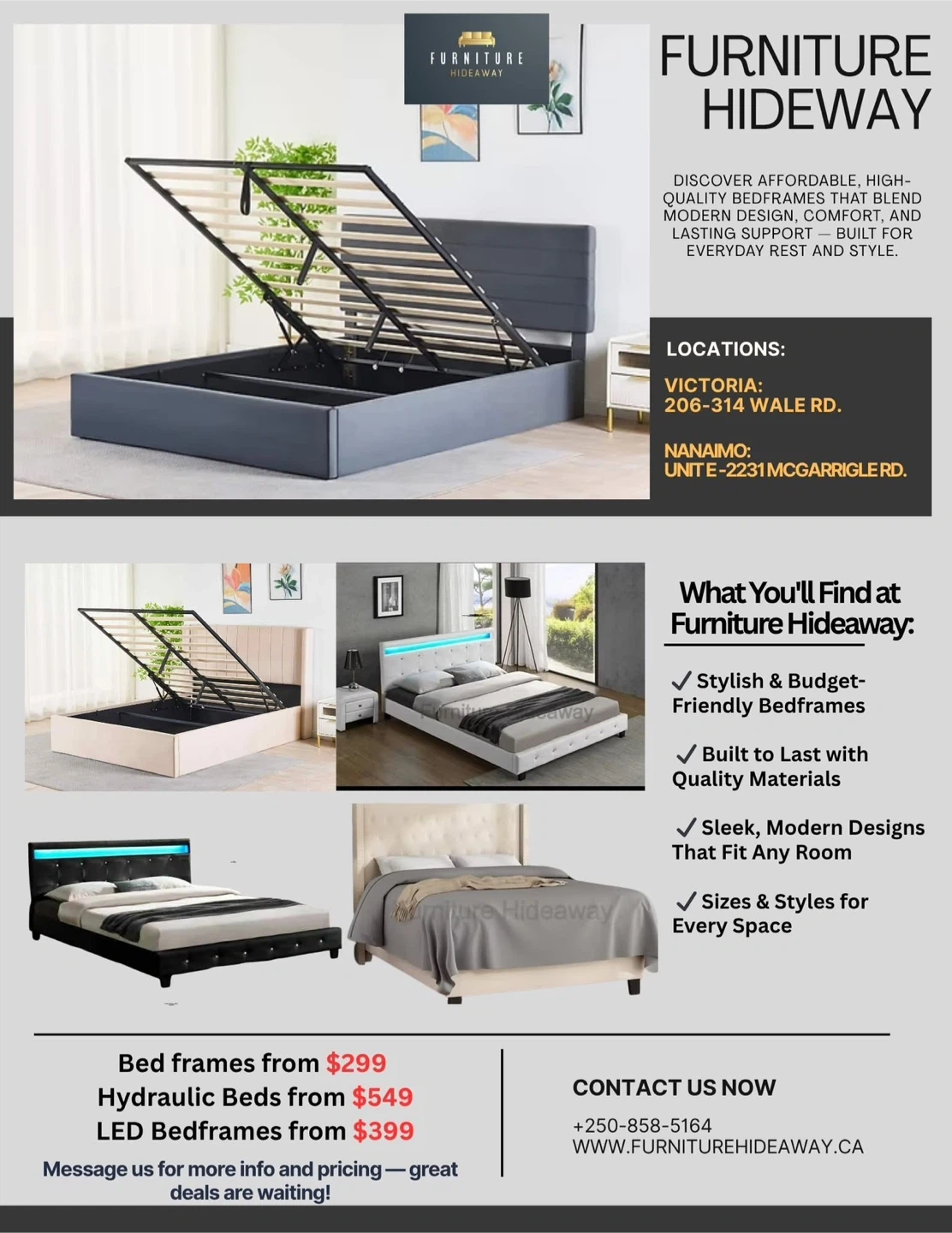 20Shop brand new couches, bedframes, and more — all with warranty. Visit us in-store and explore a wide range of quality couches, bedframes, and more — all at great prices! 📍 Victoria: 206-314 Wale Rd 📍 Nanaimo: Unit E - 2231 McGarrigle Rd 📩 Message us for more info and pricing details! 🔥 Great deals are waiting — don’t miss out!