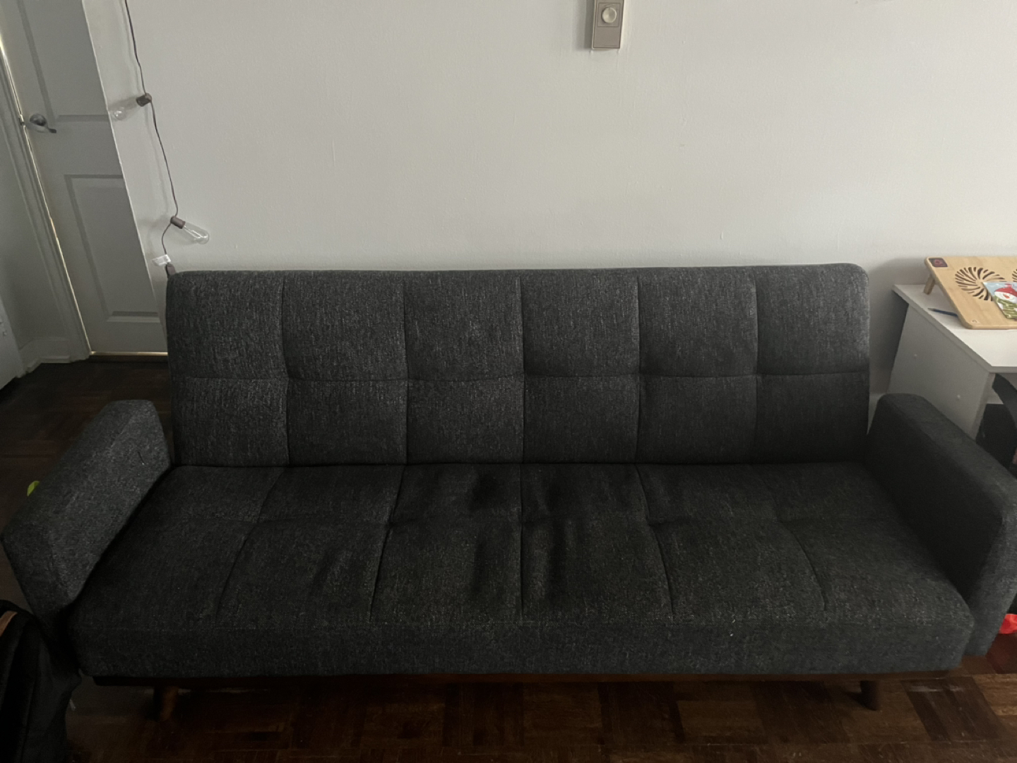 33Gently used couch selling for $250. Had it for just over a year. Converts into a bed if you have people staying over. Nothing wrong with it just need a bigger couch. Arm rests are removable. There is a rip at the bottom from when my dog was a puppy. Other than that there is no damage on the couch. Length: 1.9m Heights 66cm depth 85cm. Pick up only.