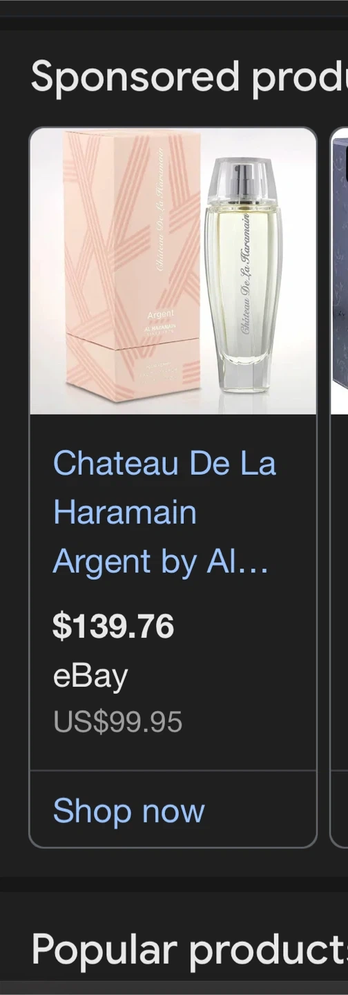 Selling a Chateau De La Haramain Argent Eau de Parfum. It contains 3.33 fl.oz or 100ml of perfume. It is a pour femme fragrance and comes in its original box