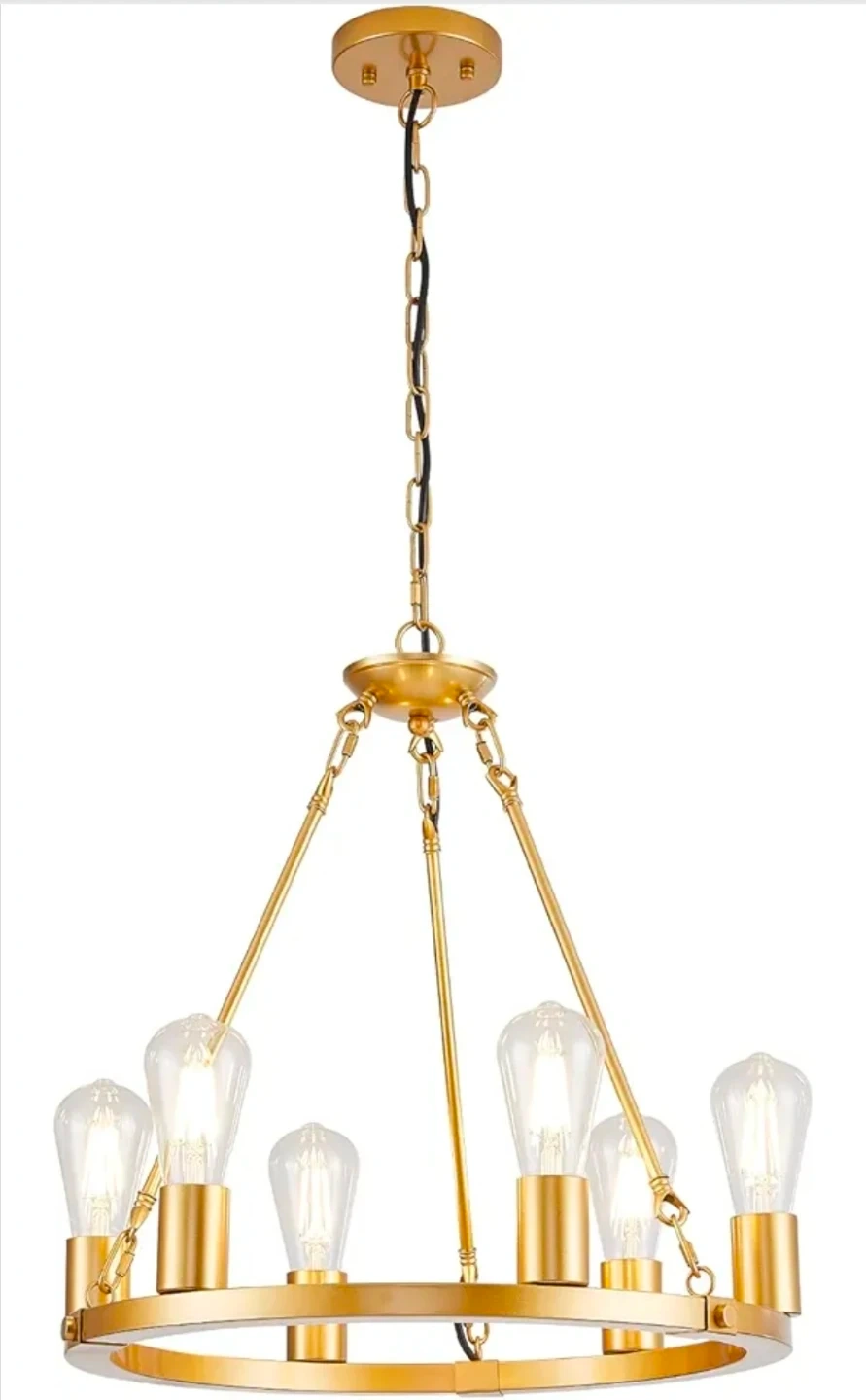 6-Light Gold Wagon Wheel Chandelier