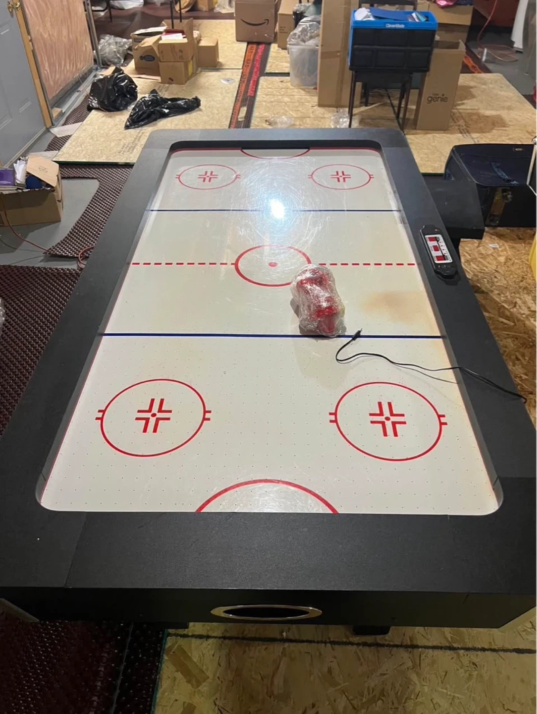 This air hockey table features a digital scoreboard to track your game! It's great for family fun or friendly competition. Comes with pucks and paddles wrapped for transport.