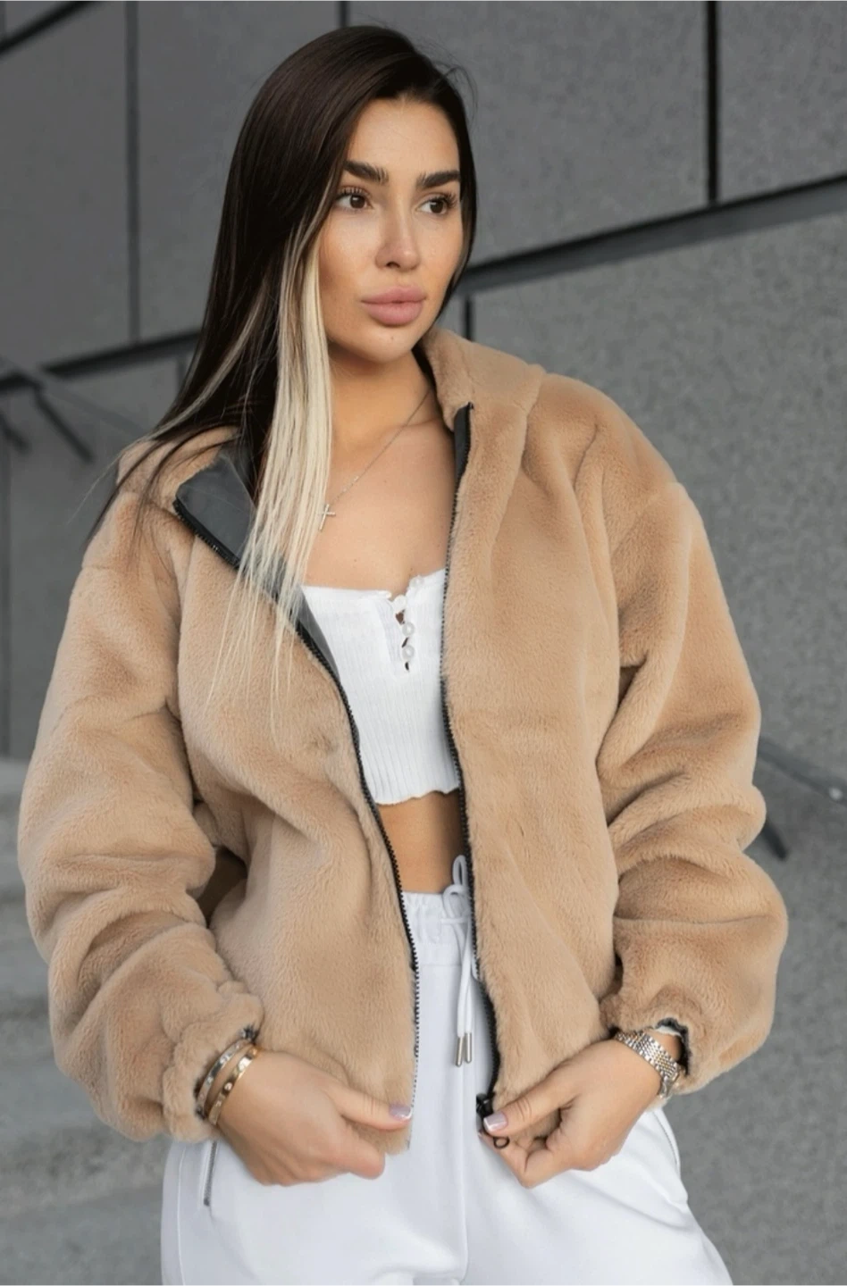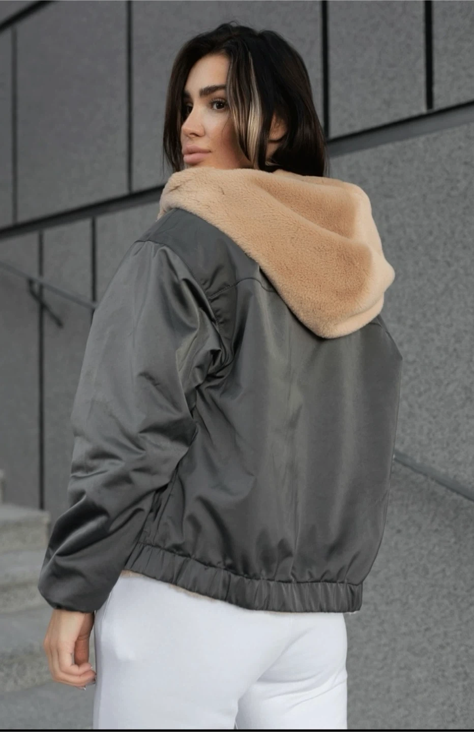 75This is a two-sided jacket. On one side is a fur coat, on the other a comfortable jacket. It does not blow out and warms well. Size Small Pick up near Islington subway station