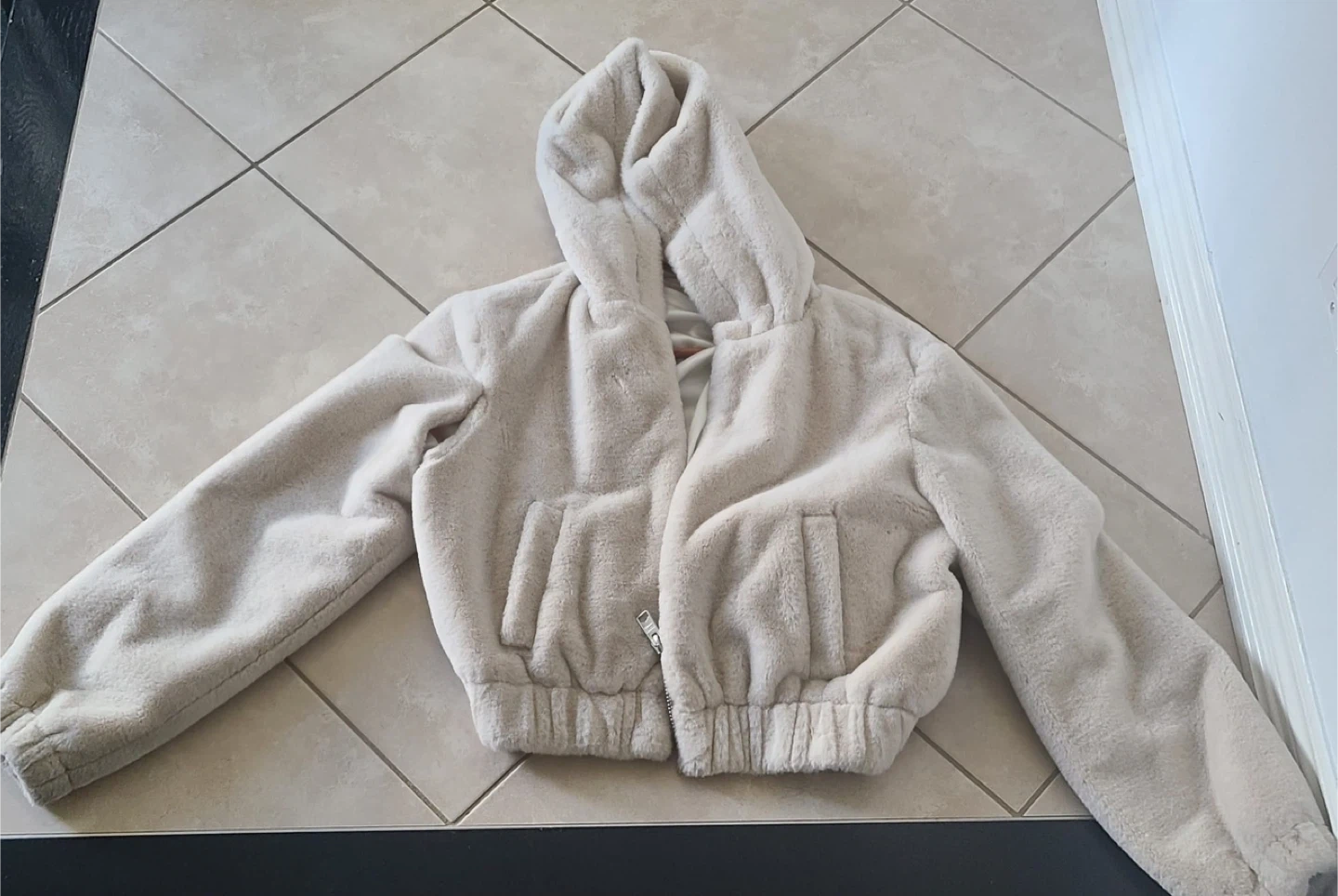71Selling a cozy fuzzy hooded jacket! It's in great condition and perfect for layering on chilly days