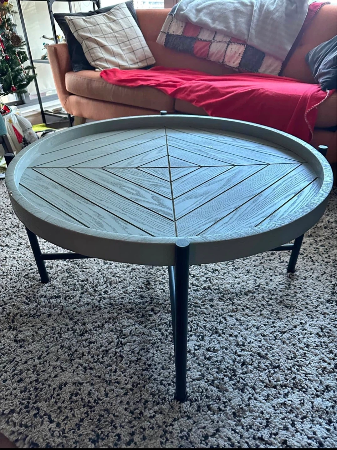 Round coffee table included — sturdy, with a few small chips on top (cosmetic only).