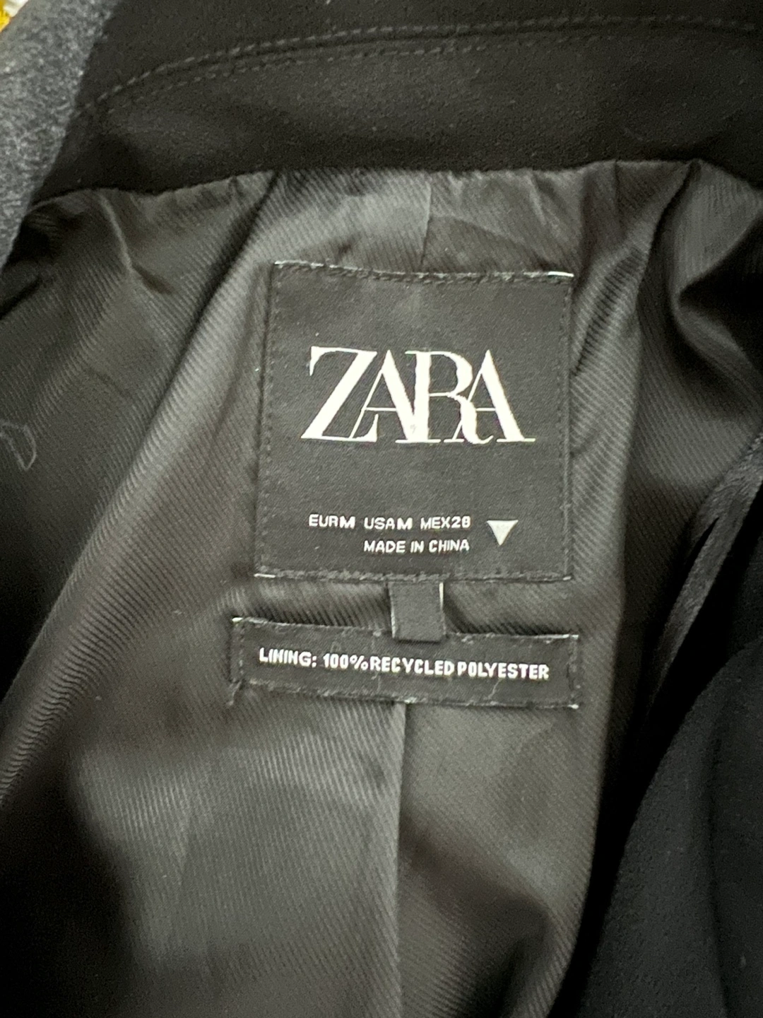 Black double breasted blazer with long sleeves and a relaxed fit. Made of recycled polyester. Condition is good.