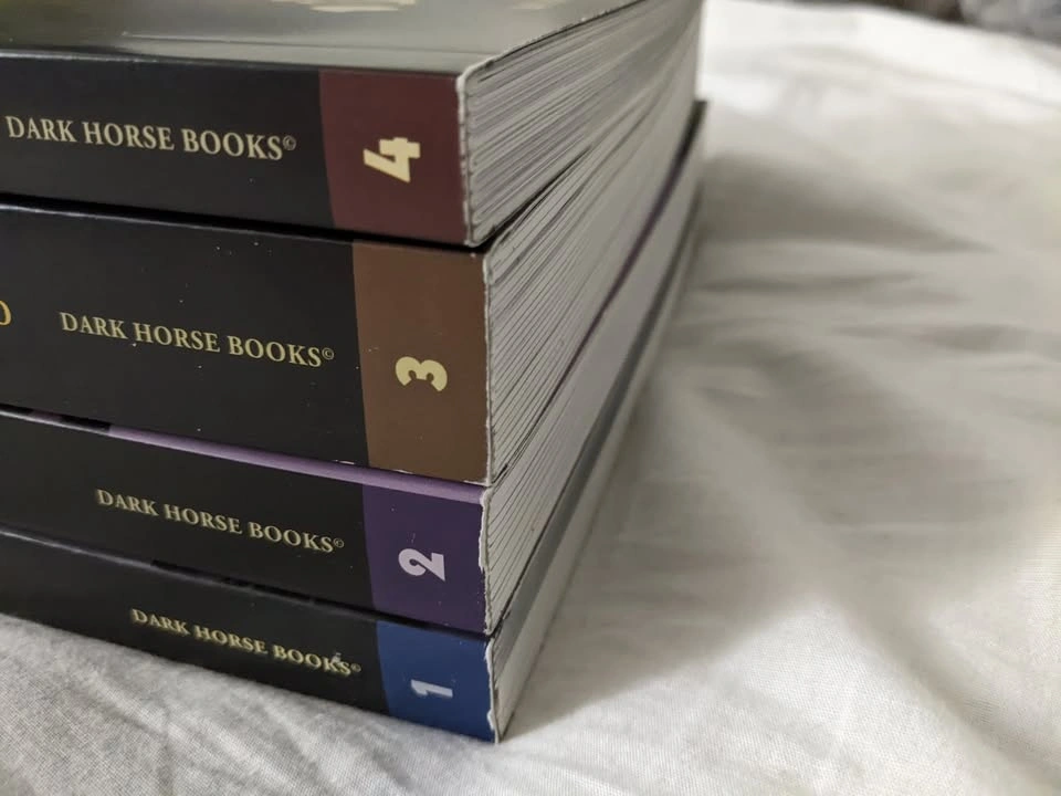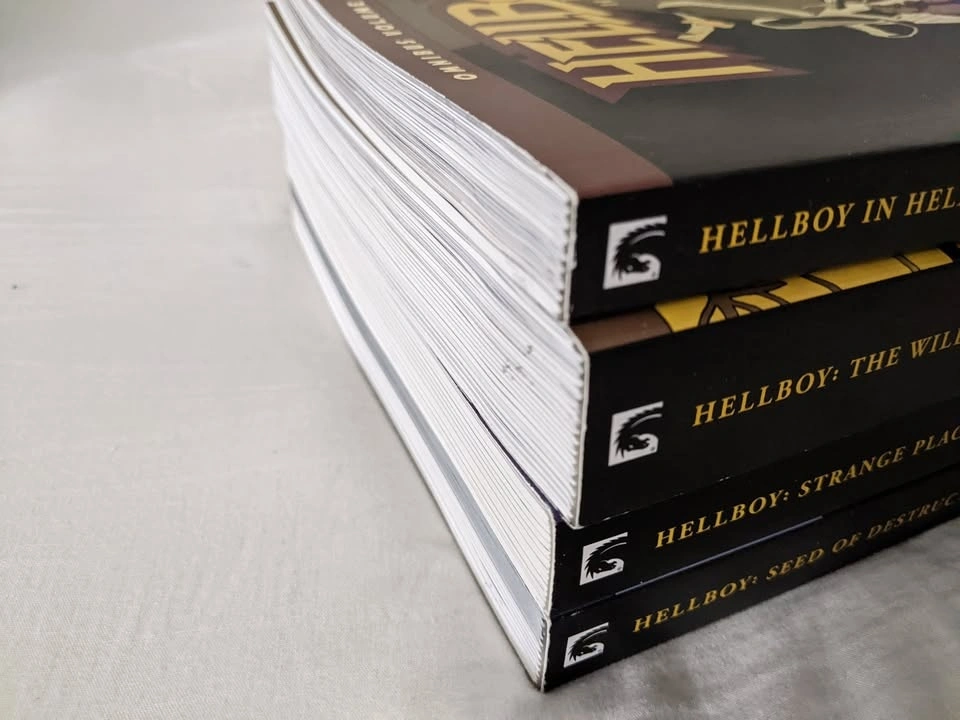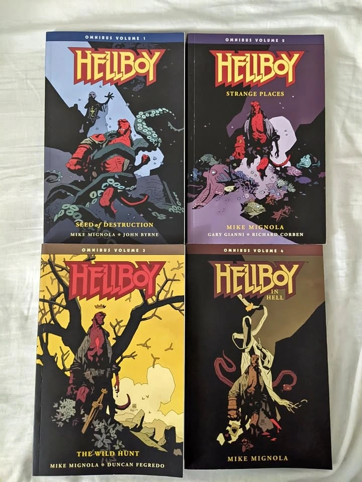 The 4 volumes of Hellboy's Paperback Omnibus set. Books have been read, but are in great condition minus some shelf wear shown in the images. Would like to sell as bulk, not individuals.