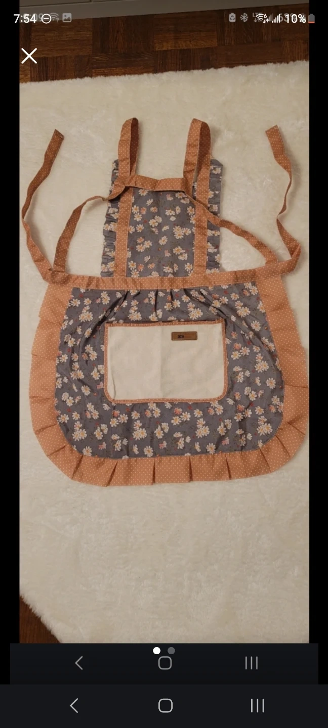 Cute floral apron with ruffles and two front pockets. Ties at the neck and waist for an adjustable fit. Perfect for kitchen use or crafting!