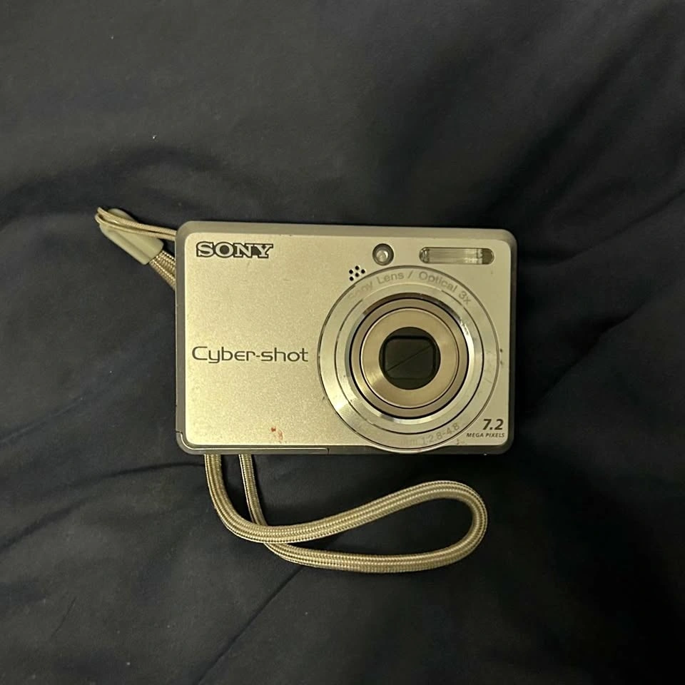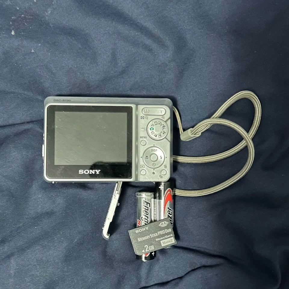 Vintage point and shoot style camera for a 2000s aesthetic. Comes with 2 AA batteries and a 2GB memory card (Prostick Duo). You can see sample results in the linked video (not my video, but it shows the same camera in use).