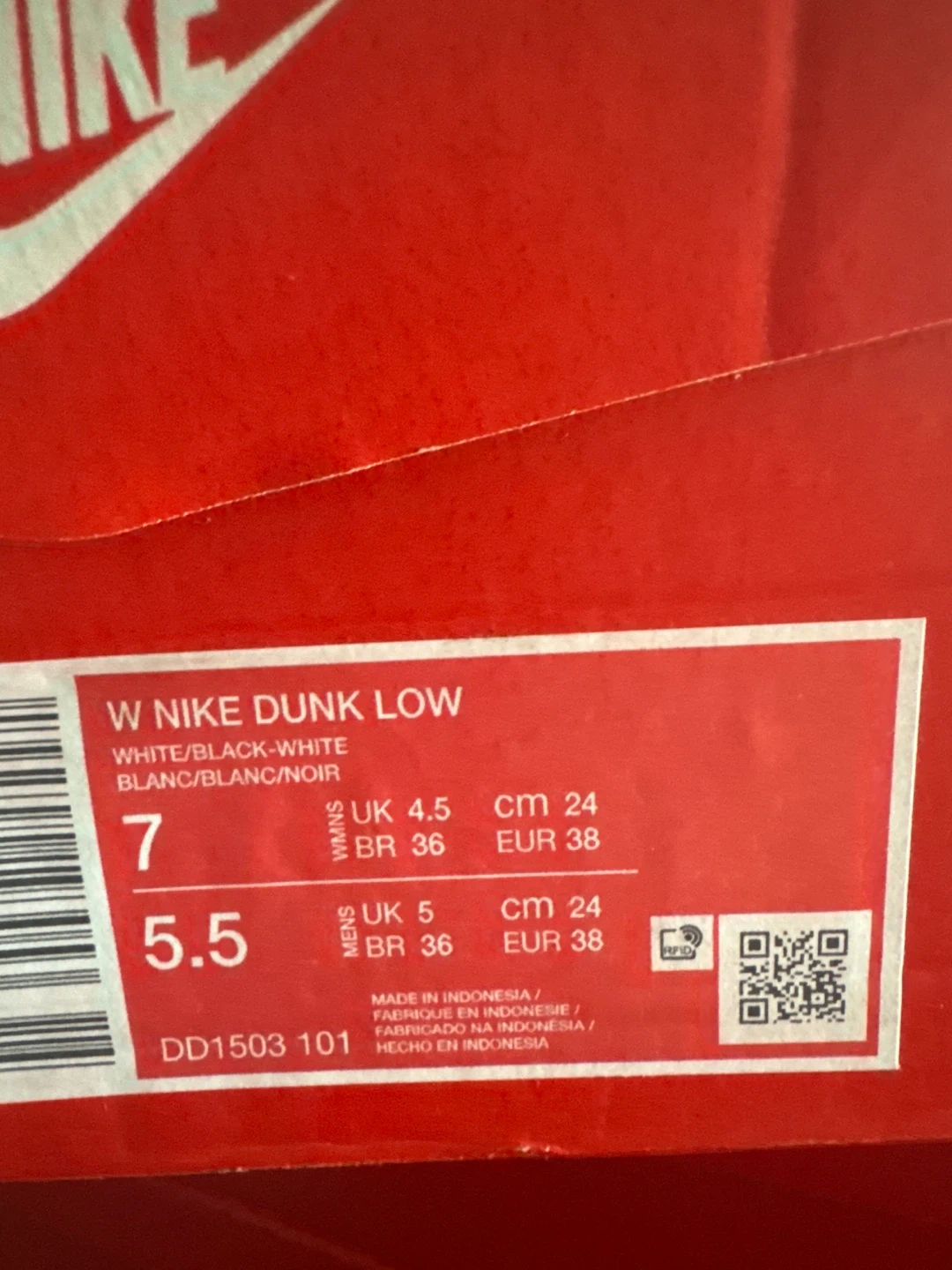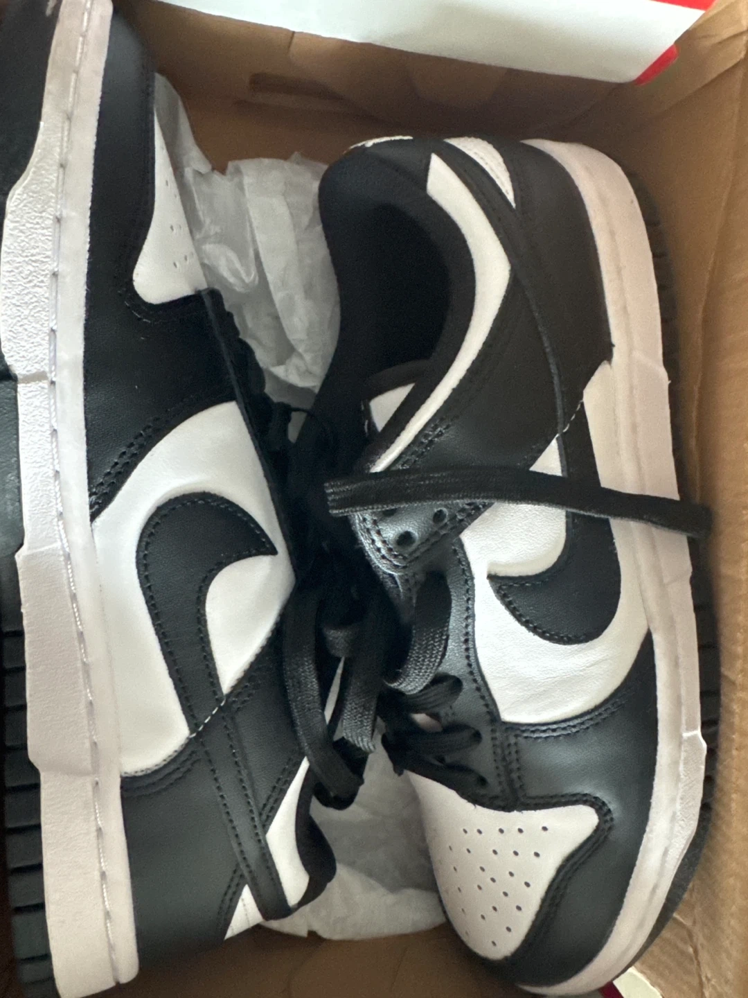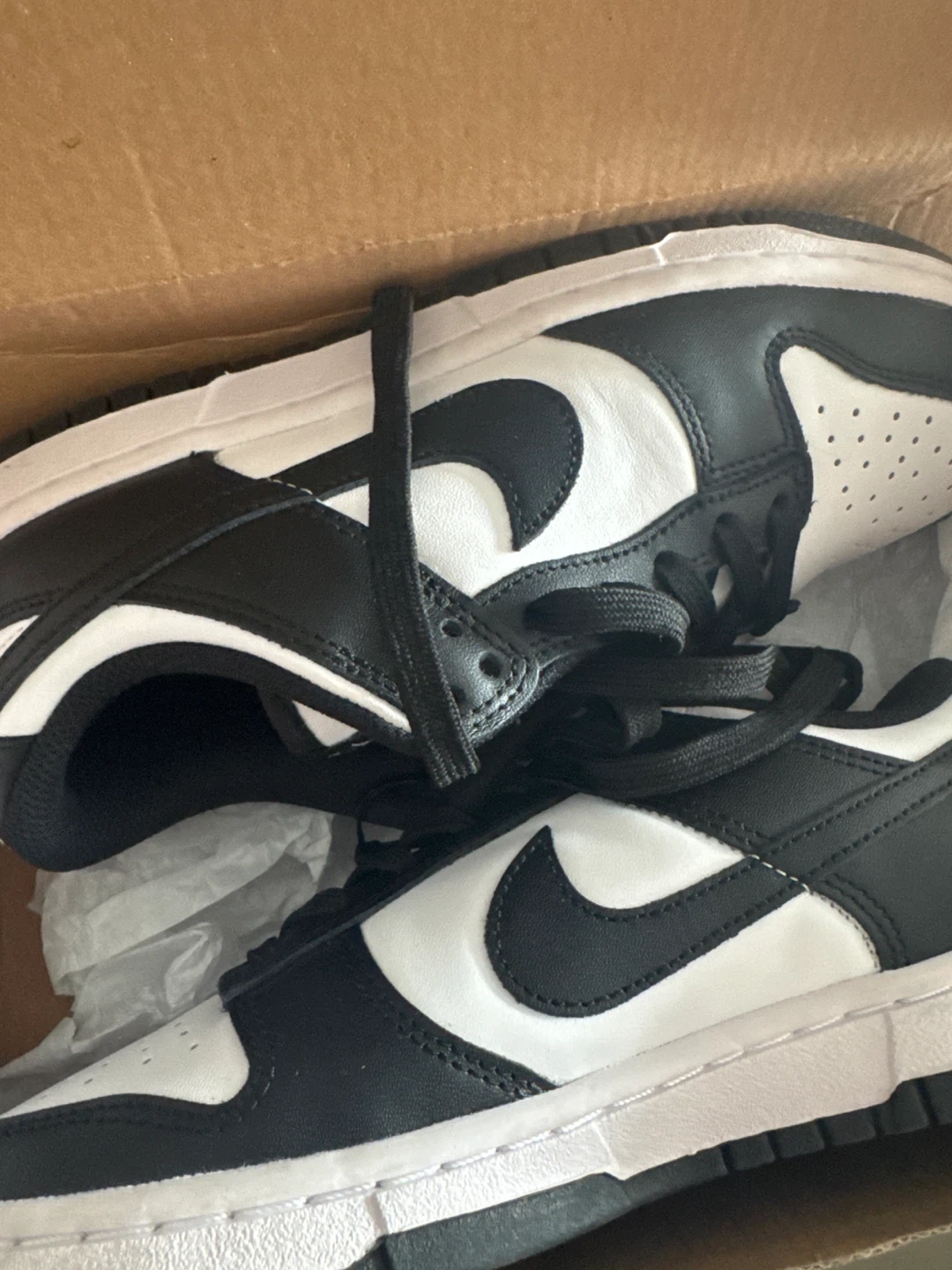 Women's Nike Dunk Low shoes in white and black. Brand New shoes, never worn! Partner got me the wrong size, it’s past the return window.