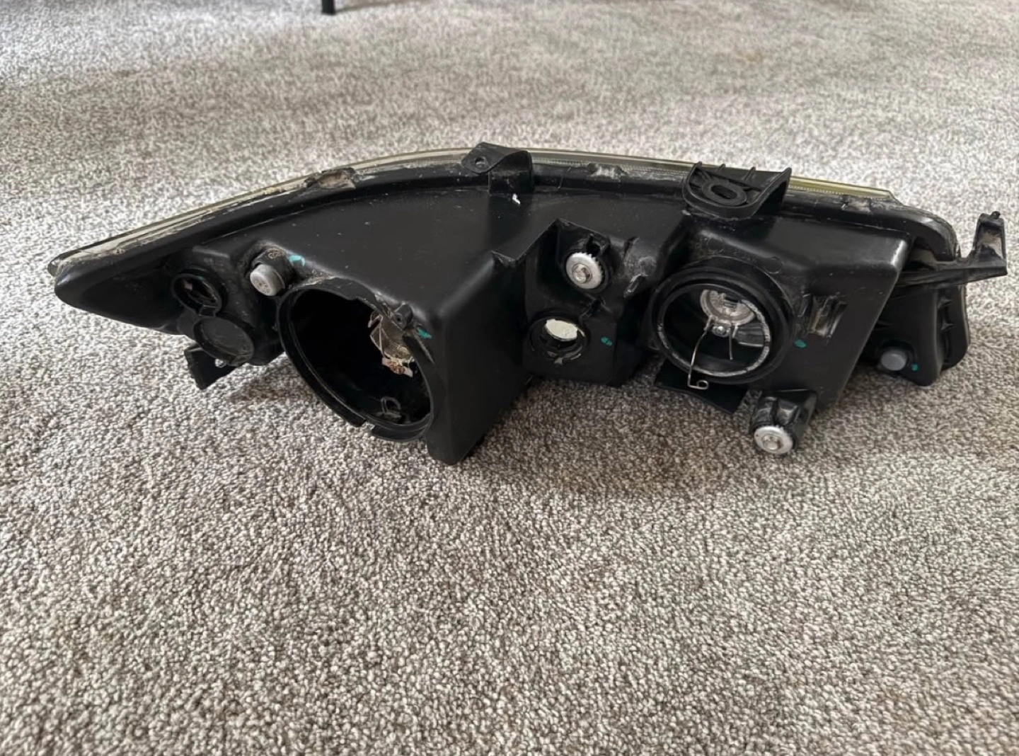In good condition, all mounts are intact, lens is clean with no major scratches or cracks.