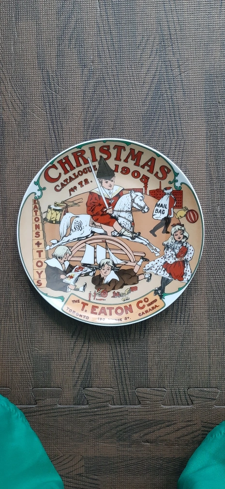 Beautiful vintage Christmas plate. Features a charming illustration from the 1904 T. Eaton Co. catalogue. Collector's item. Excellent condition.