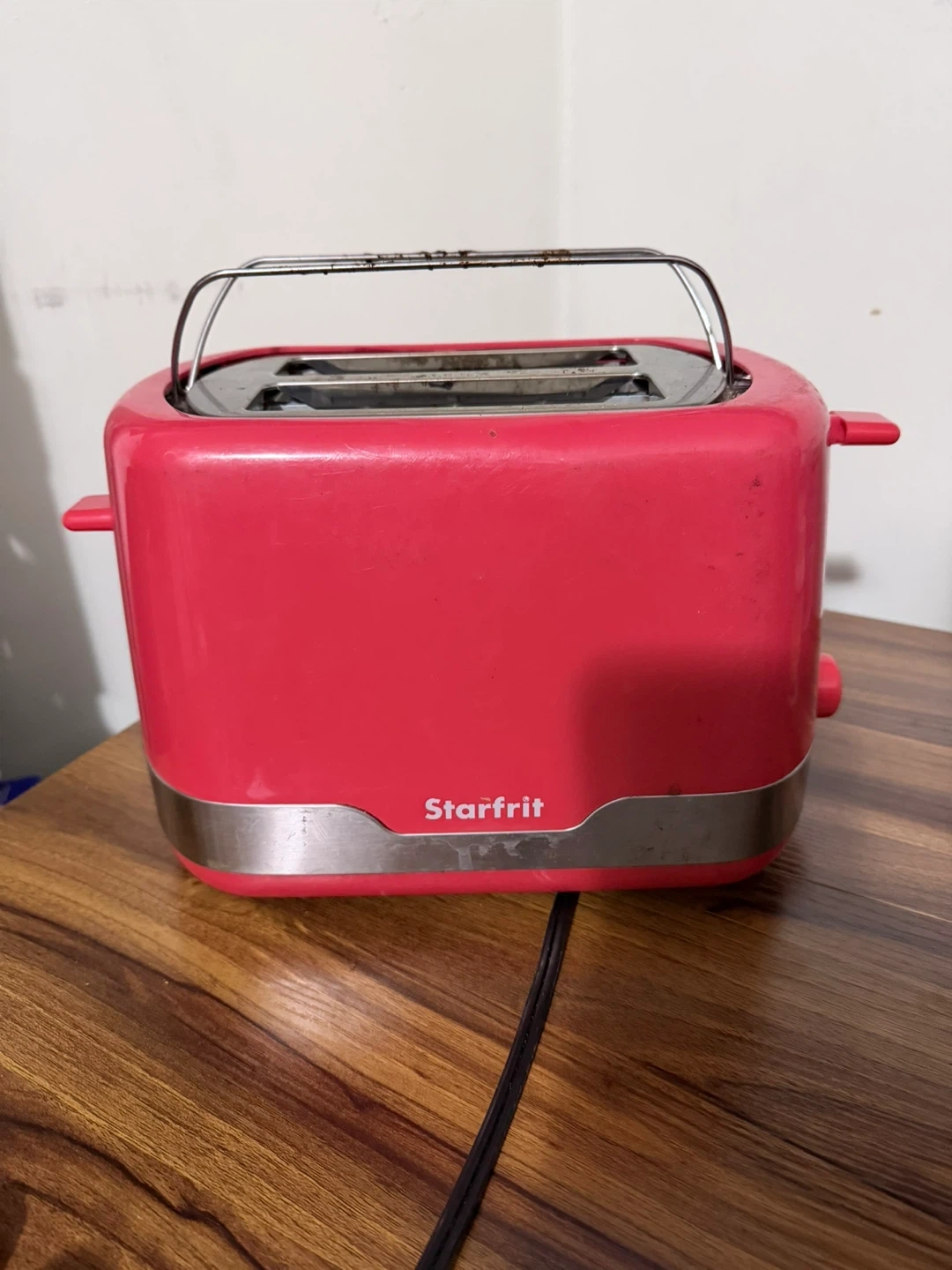 A Starfrit 2-slice toaster in a fun Red colour. It has settings for toast shade and bagel function. Great for quick breakfasts or snacks!