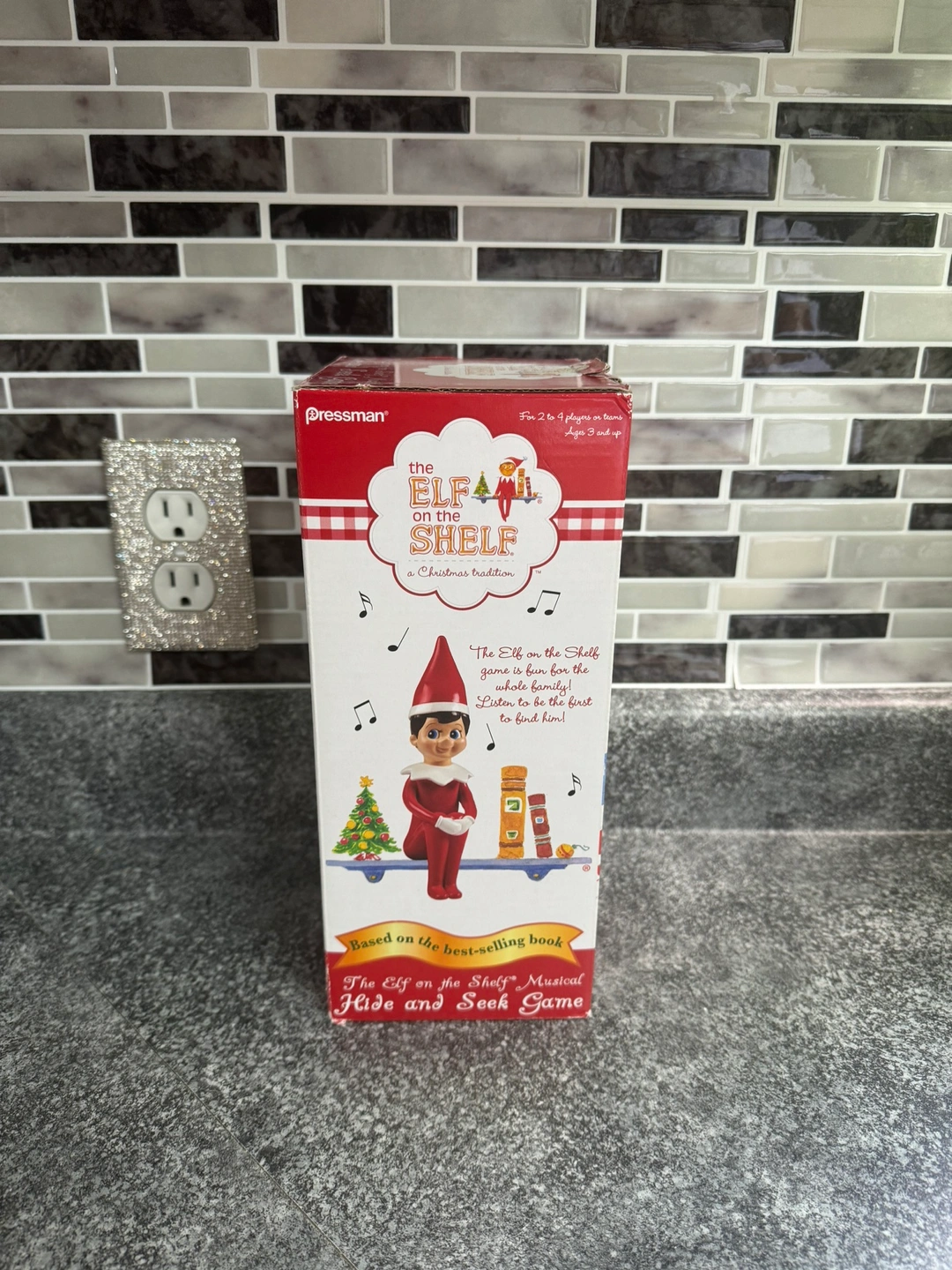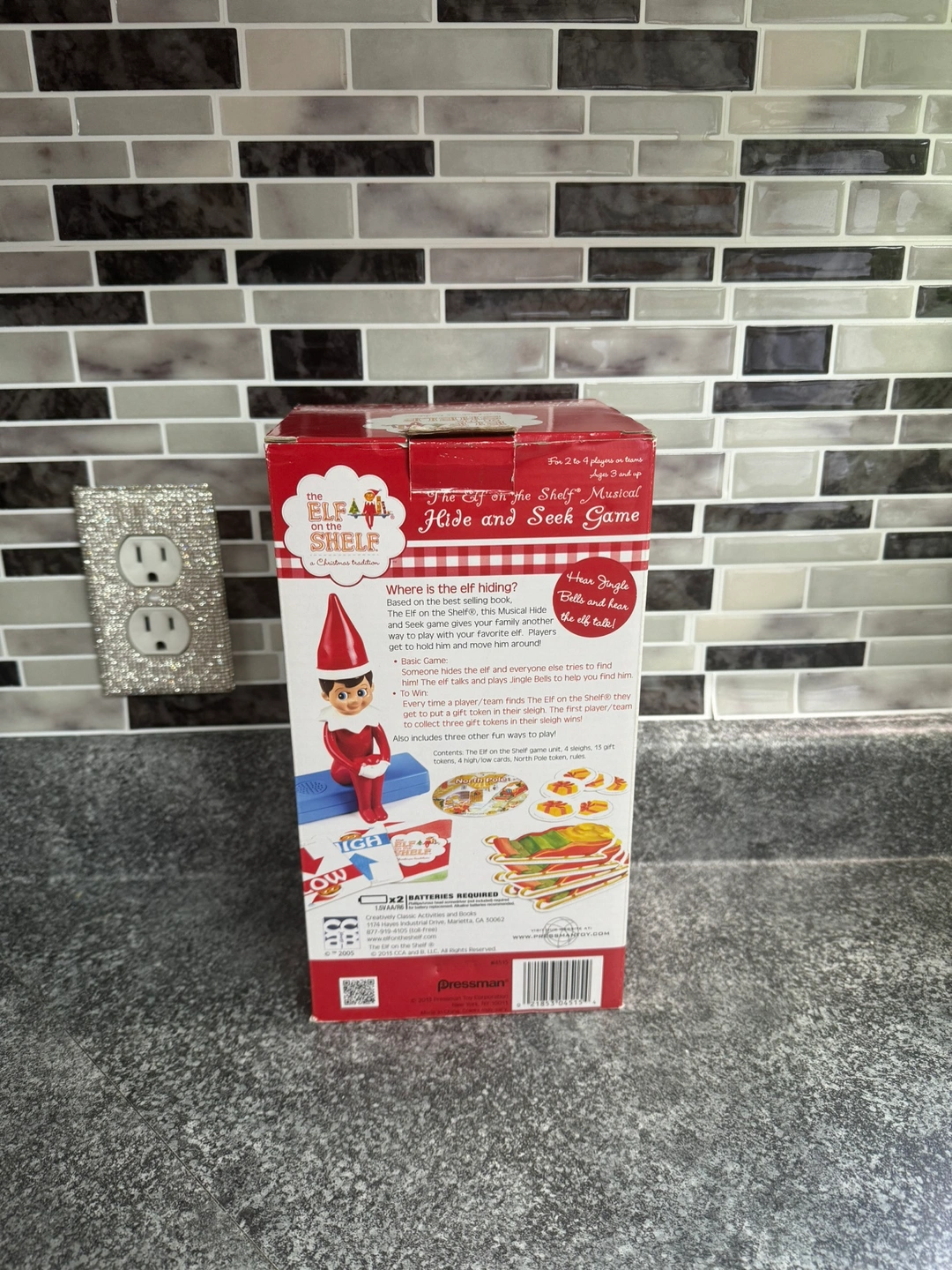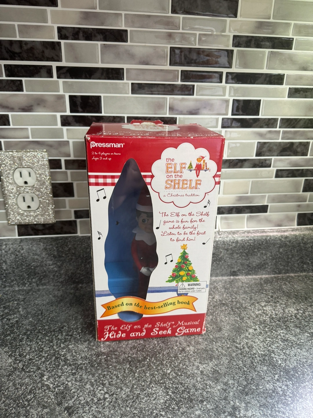 The Elf on the Shelf Musical Hide and Seek game is a fun game for the whole family. The elf hides, and you have to listen for him to find him!