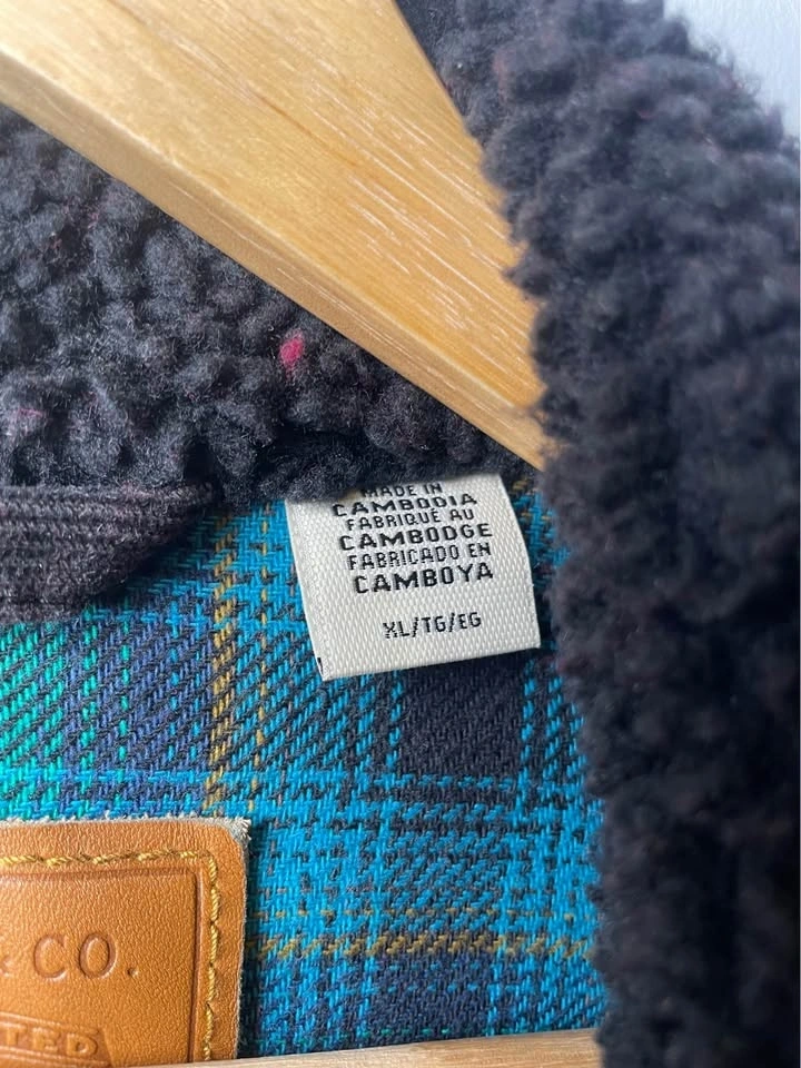 • Warm sherpa-lined body with a plaid flannel accent.