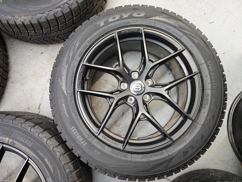 Set of 4 19" Braelin alloy rims with toyo observe winter tires on them 255/55/R19 used on Toyota highlander/Lexus rx350. Rims and tires are almost brand new. Tires have approximately 90% thread left on tires. TPMS INSTALLED