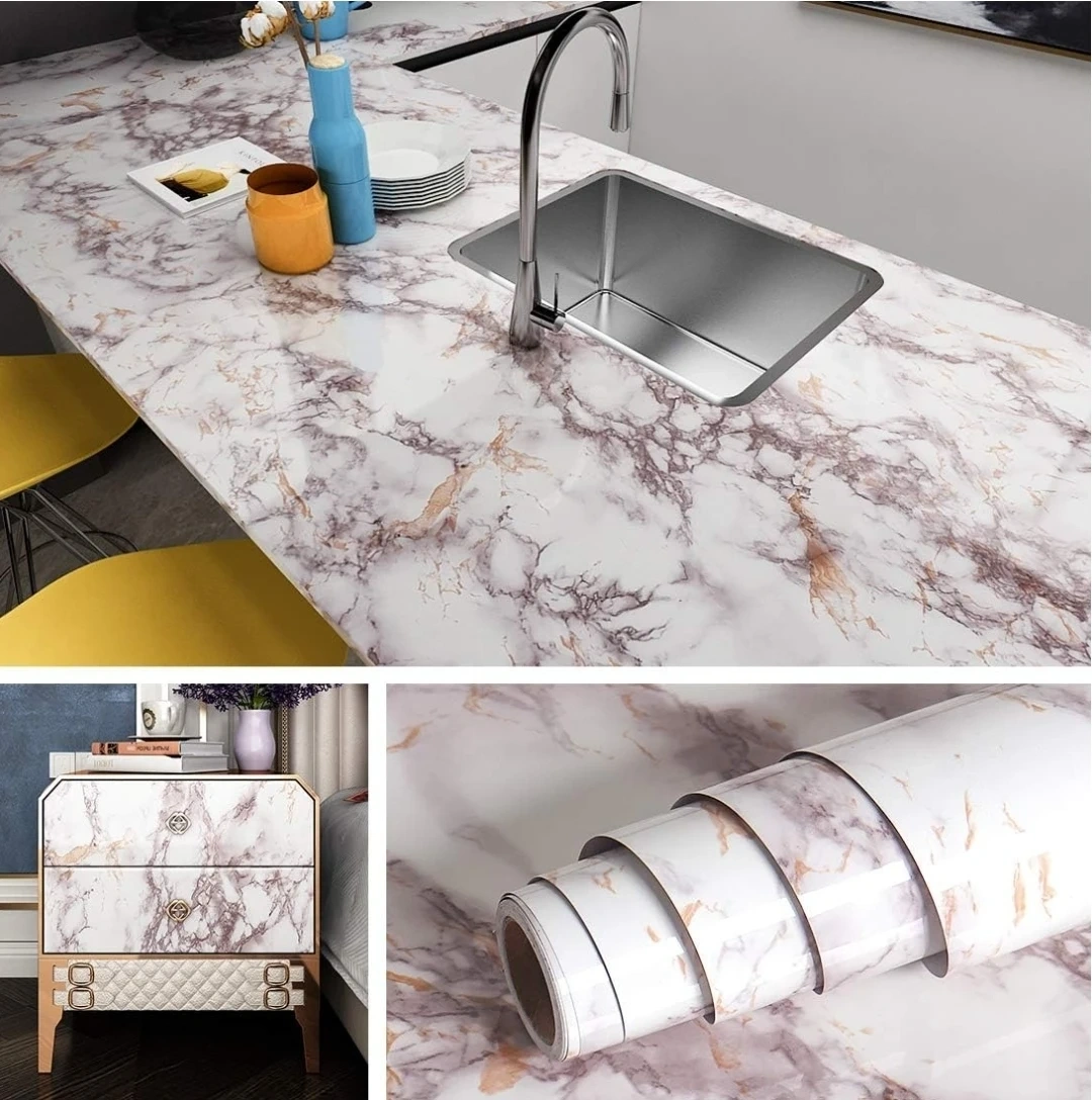 ✨ Instantly upgrade your kitchen, bathroom, desk, or furniture with this beautiful marble peel-and-stick contact paper.