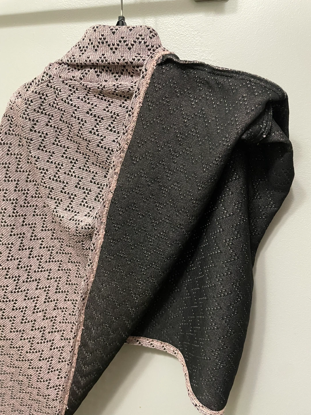 Selling a stylish and versatile poncho capelet designed and made in Winnipeg by EMK .