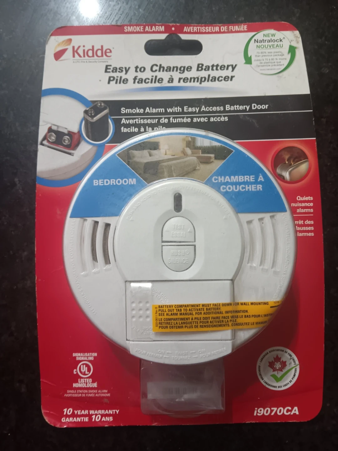 This is a Kidde i9070CA single station smoke alarm. It features an easy access battery door for simple battery changes. This model comes with a 10-year warranty.