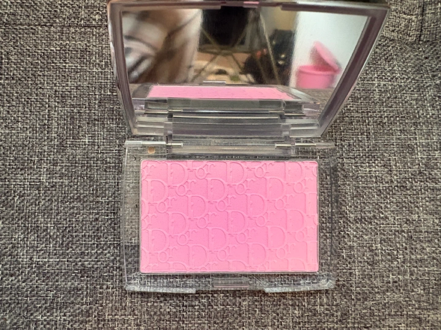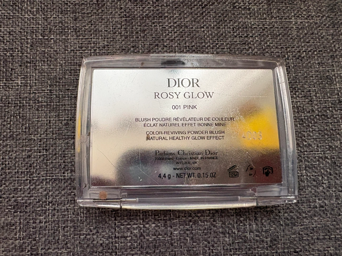 This is the Dior Rosy Glow blush in shade 001 Pink. It's a colour-reviving powder blush designed for a natural healthy glow effect. The compact contains 4.4g of product. This blush is perfect for adding a touch of colour and radiance to your cheeks. Paid $55 plus tax. Asking $45