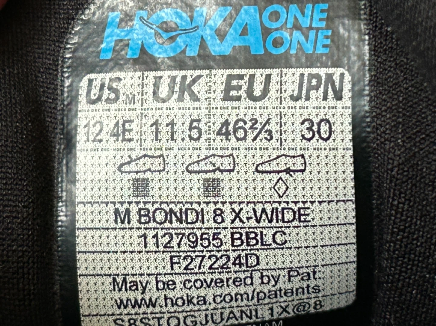 Men’s HOKA Bondi 8 Triple Black Sz 12 (Wide 4E)