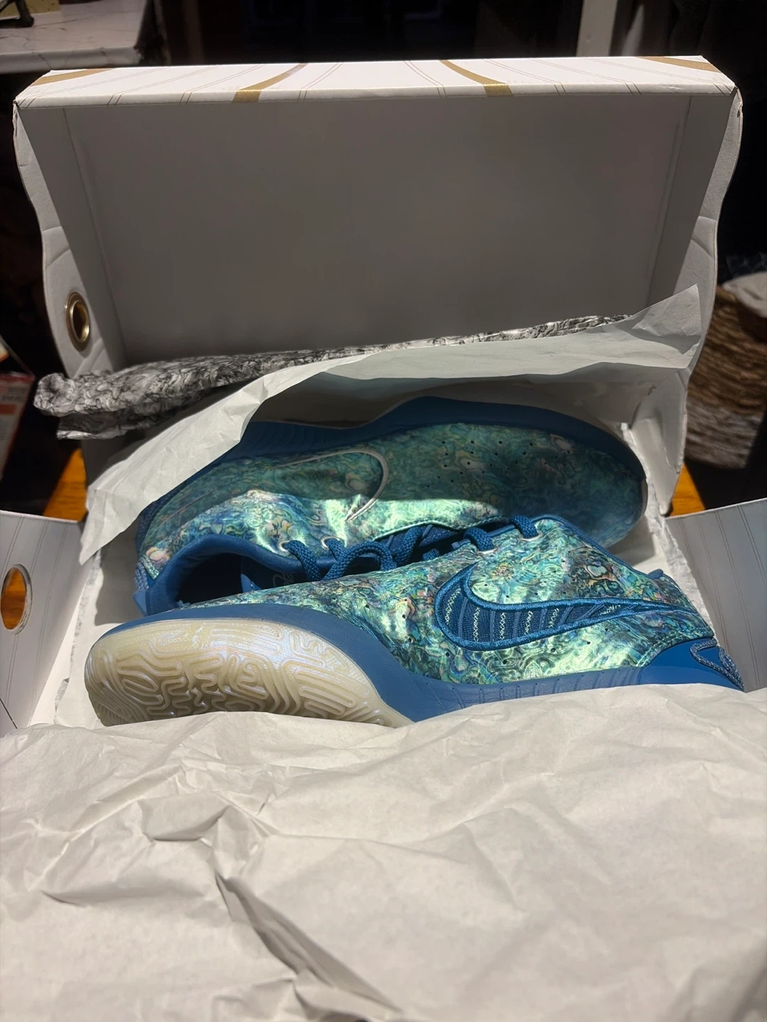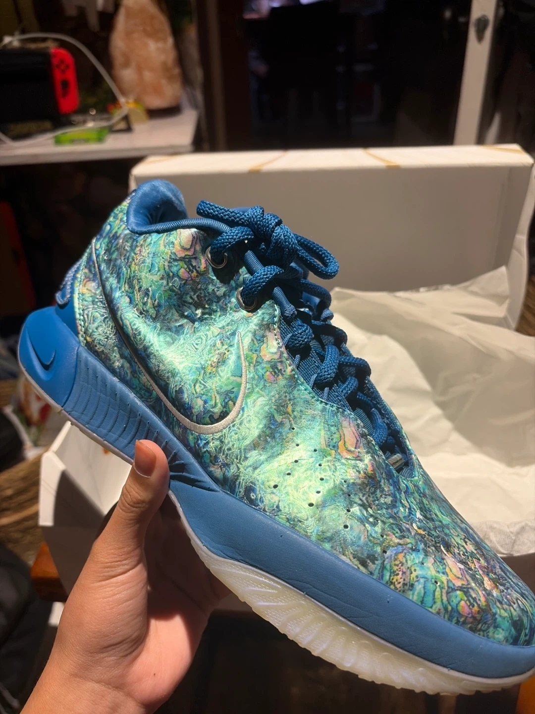These Nike LeBron 21 shoes come in a vibrant blue and green pattern. They're still in their original box with cover paper. A great size 8 mens pair for basketball enthusiasts! Would prefer to meet at Joyce Station and cash only!