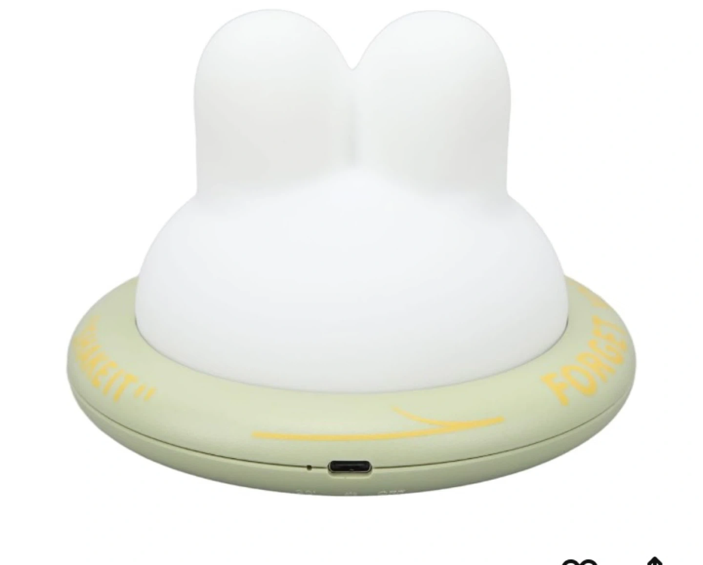 Cute bunny rechargeable night light with 3 levels of warm light. Made of soft silicone and includes a USB charging cable. It's designed to hold your worries!