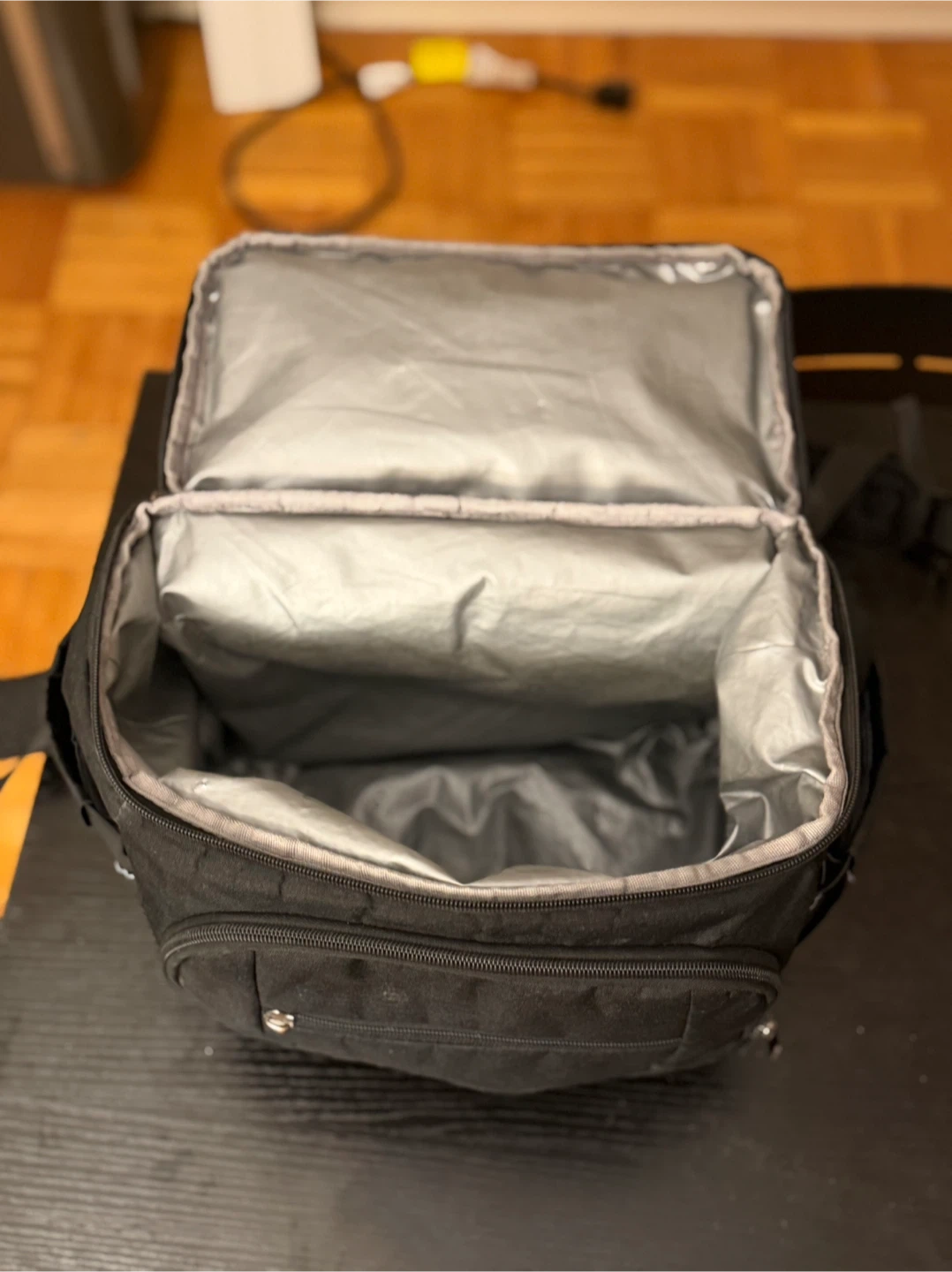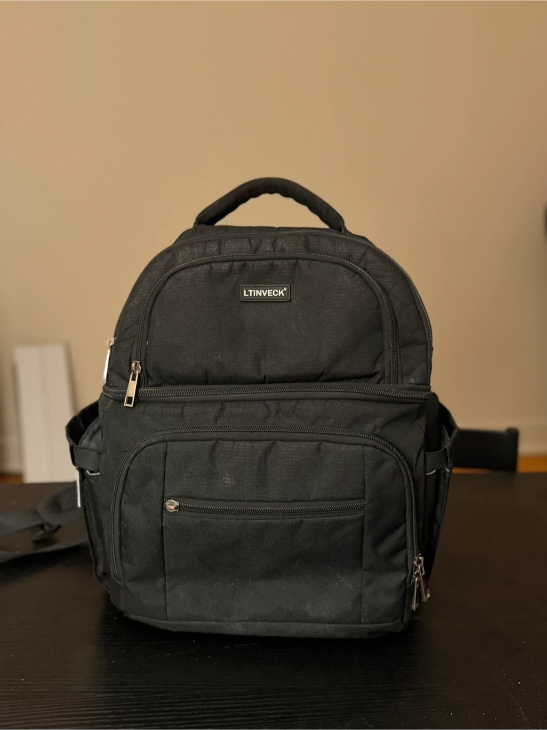 This is a LTINVECK cooler backpack in black. It can hold up to 30 cans and is insulated to keep your drinks and food cold. It has a double deck design and is leakproof. It is suitable for both men and women and can be used as a lunch backpack.