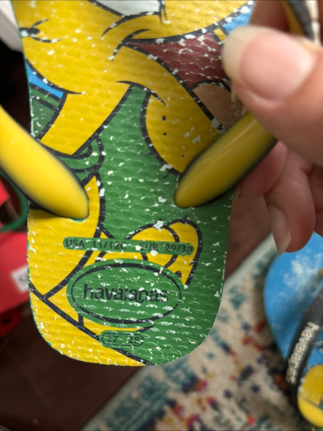 Cute Havaianas flip flops in size 11/12 (US)! Not wear a lot. Perfect for the beach or everyday wear.
