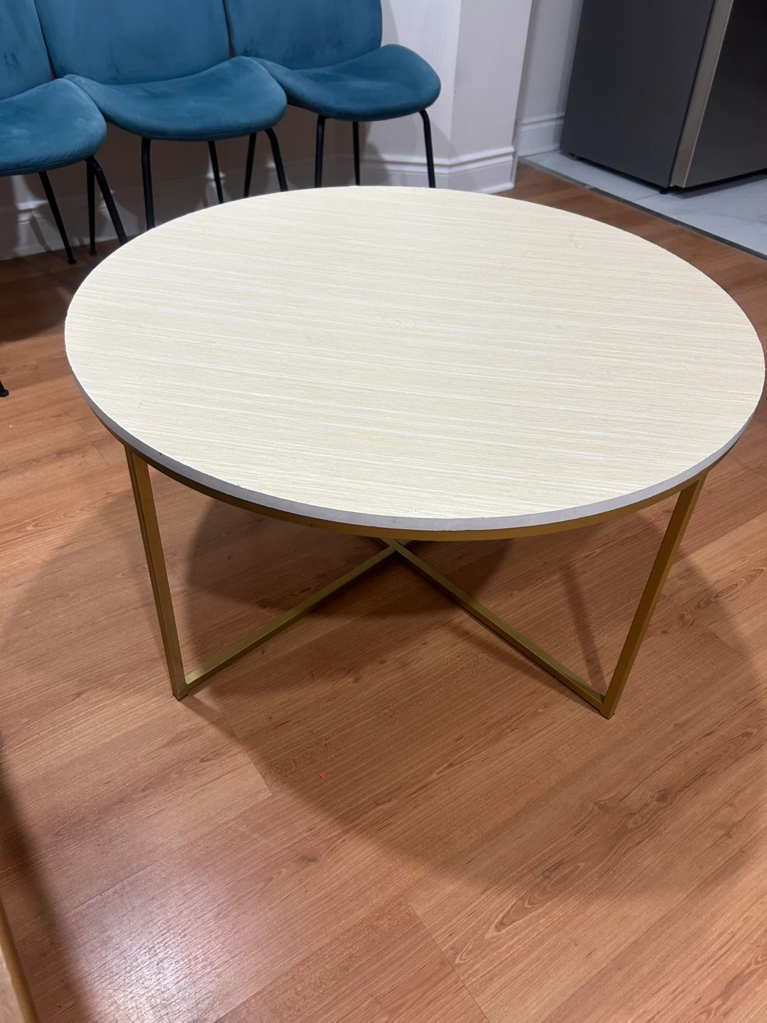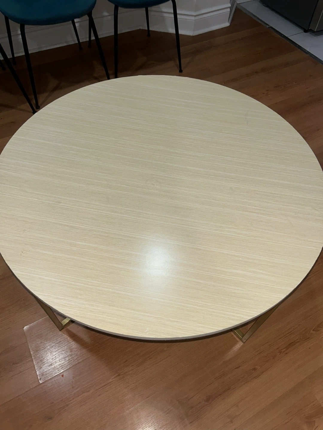 Round Coffee Table - Light Wood Finish & Gold Legs