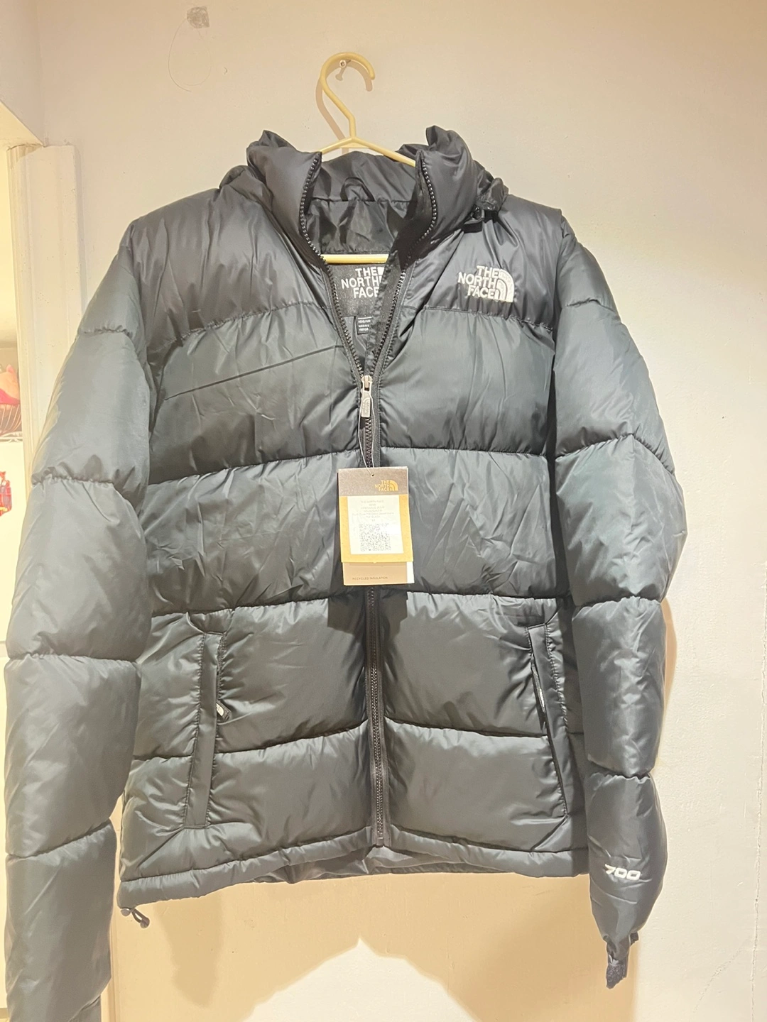 Men's size medium black puffer jacket. Features a hood and zipper closure. Recycled insulation. New with tags. Dm for more information