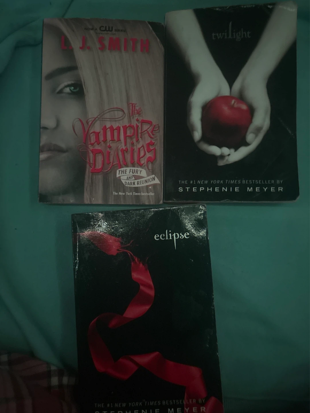 This bundle includes Stephenie Meyer's Twilight, Eclipse, and L.J. Smith's The Vampire Diaries: The Fury and Dark Reunion. These are paperback novels.