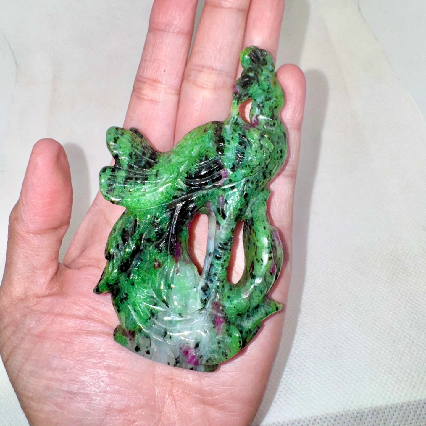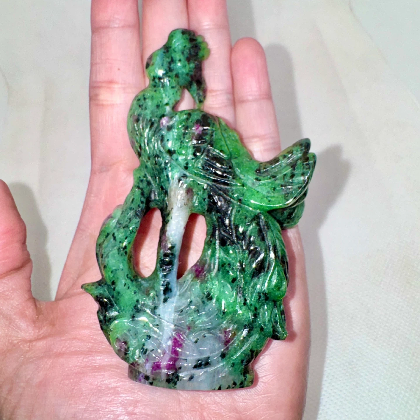Carved Ruby Zoisite Phoenix Figurine