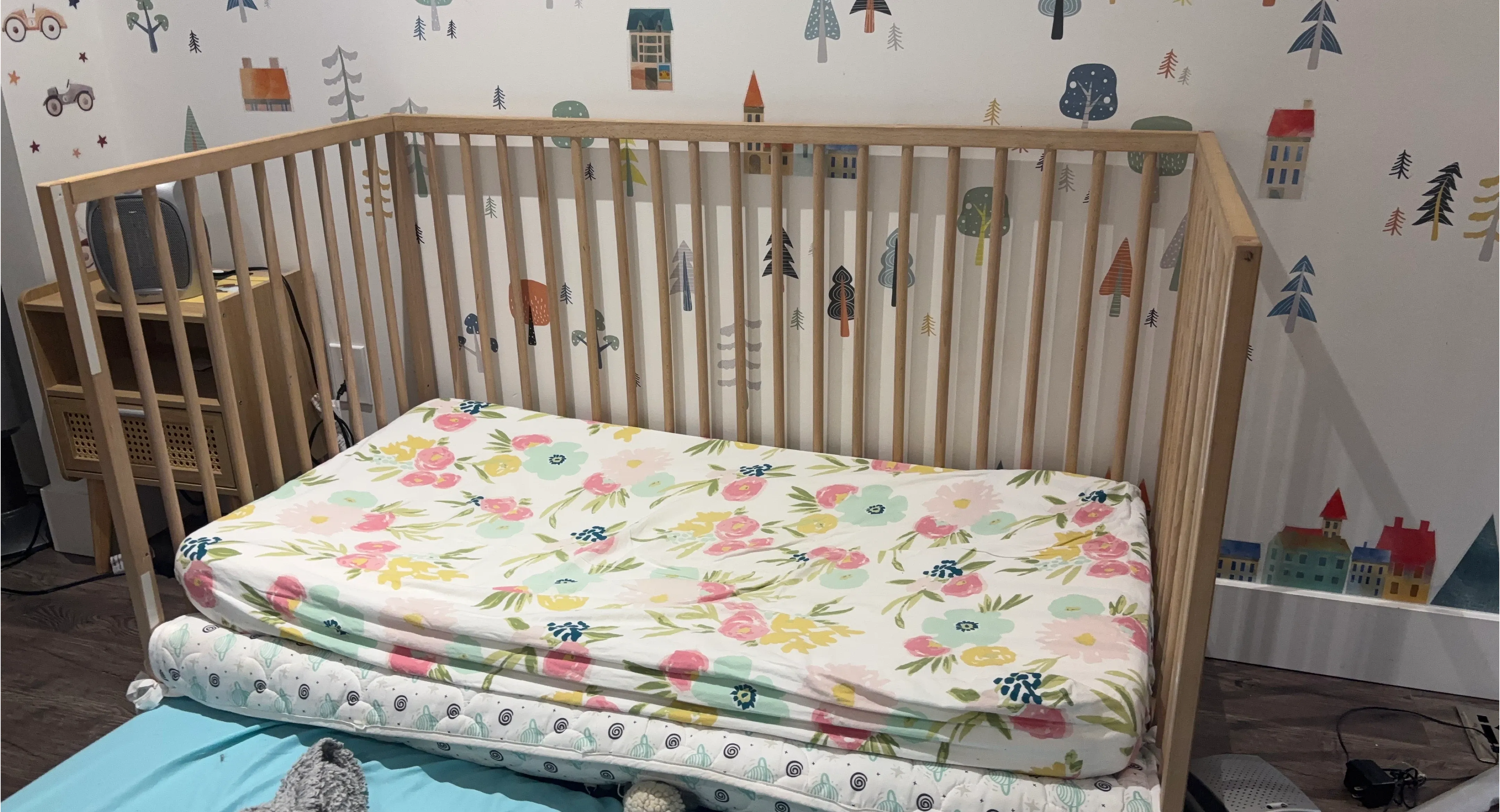 Grey Bassinet with Mobile and Storage Basket