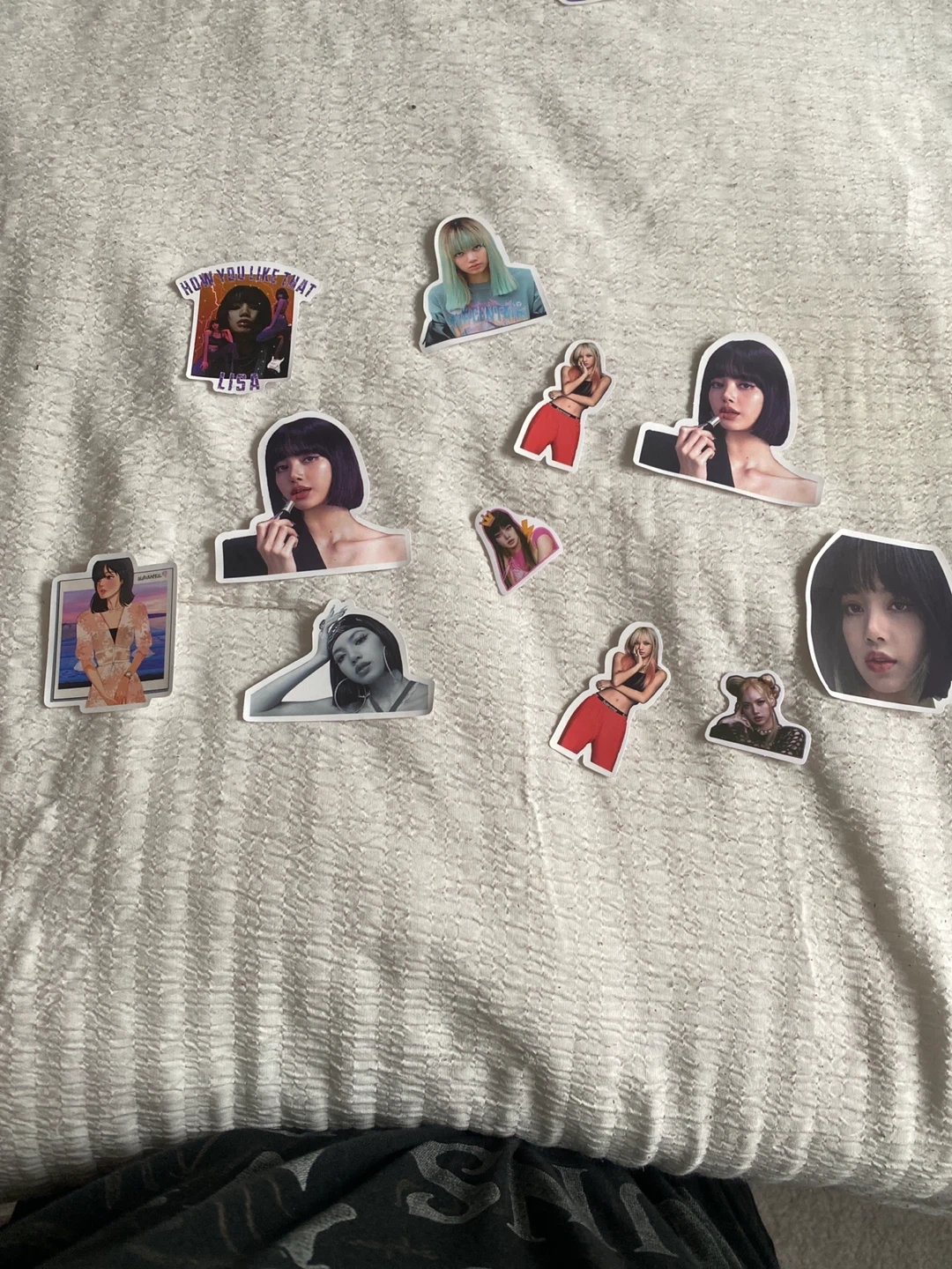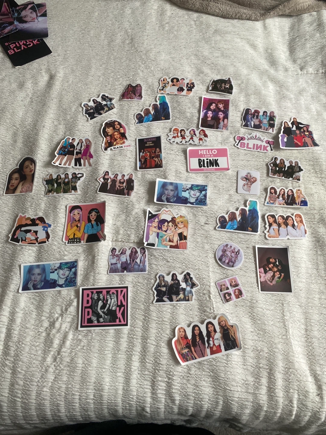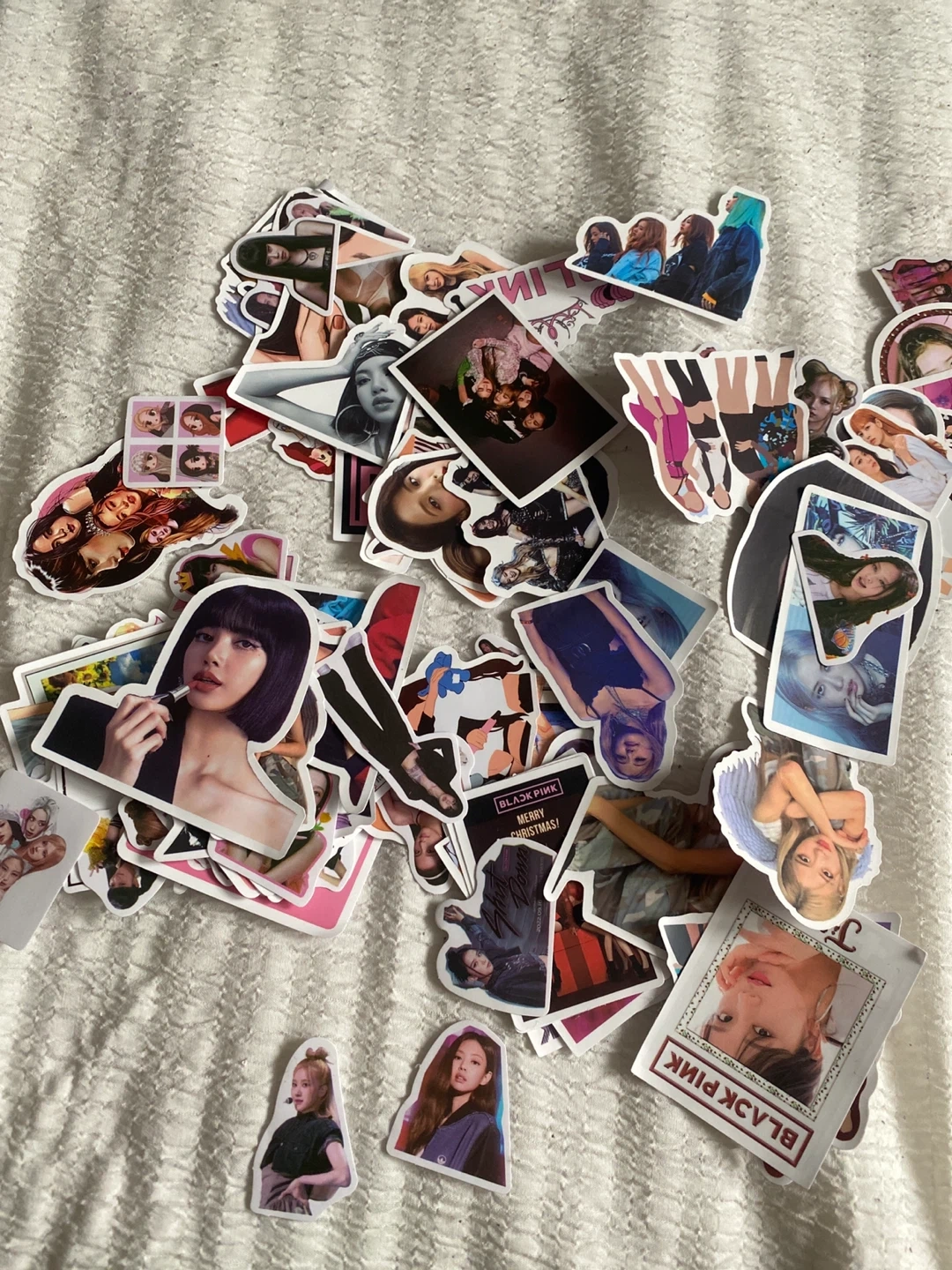 A 50+ collection of stickers featuring members of the popular K-Pop group BLACKPINK. These decals showcase individual members and group shots. They're perfect for decorating laptops, water bottles, or journals.