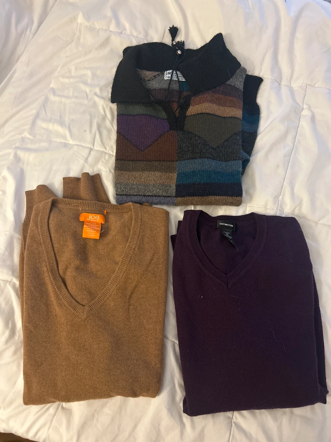 3 V-Neck Sweaters: ‘Joe Fresh’, ‘Distinction’, & Alpaca Blend