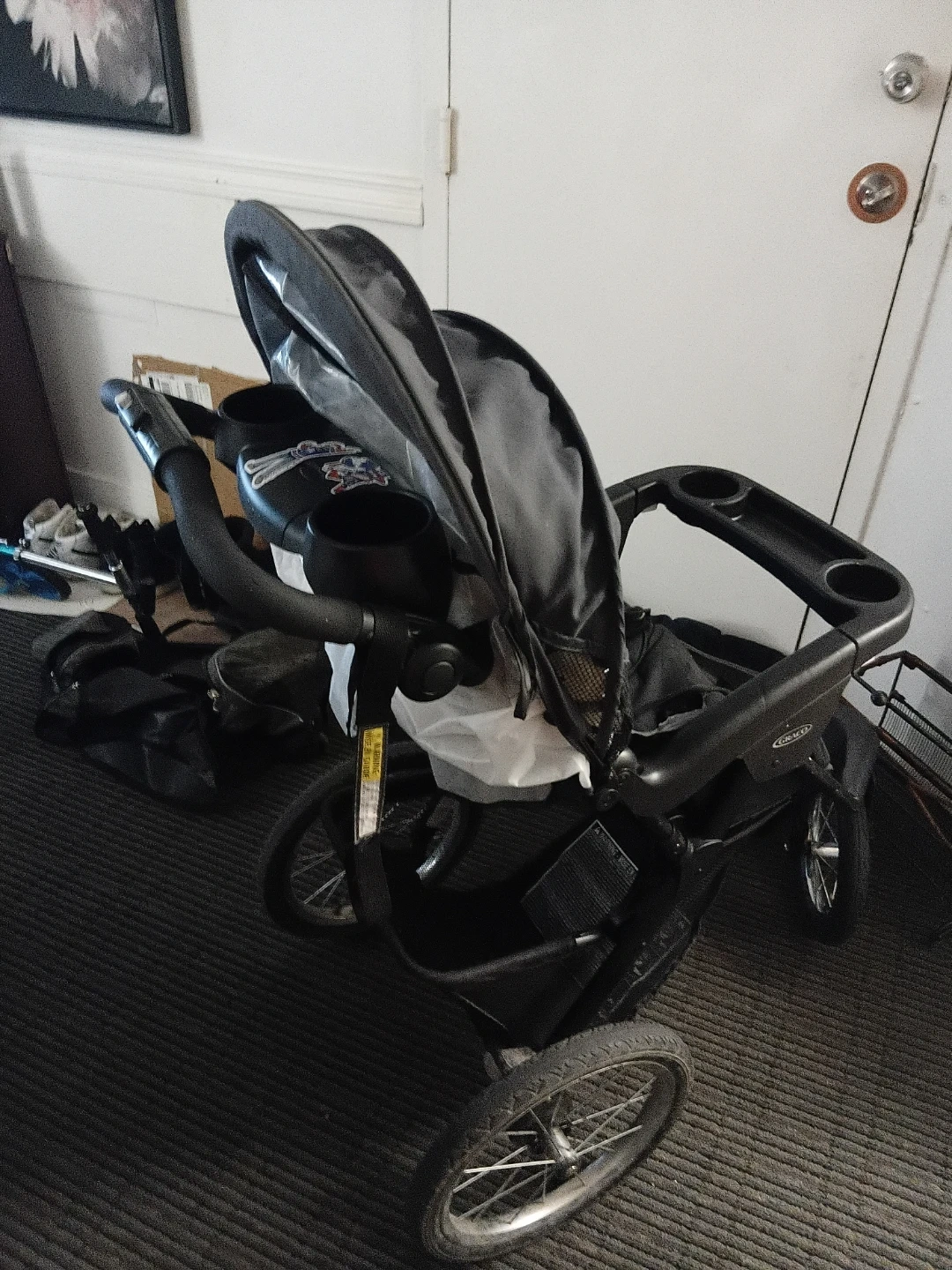 This Graco jogging stroller is designed for active parents. It includes a rain cover for protection against the elements. Perfect for walks or runs in various weather conditions! Winter tires rides smooth. Make me a offer. Will settle for 45$ but would like asking price. Thanks.