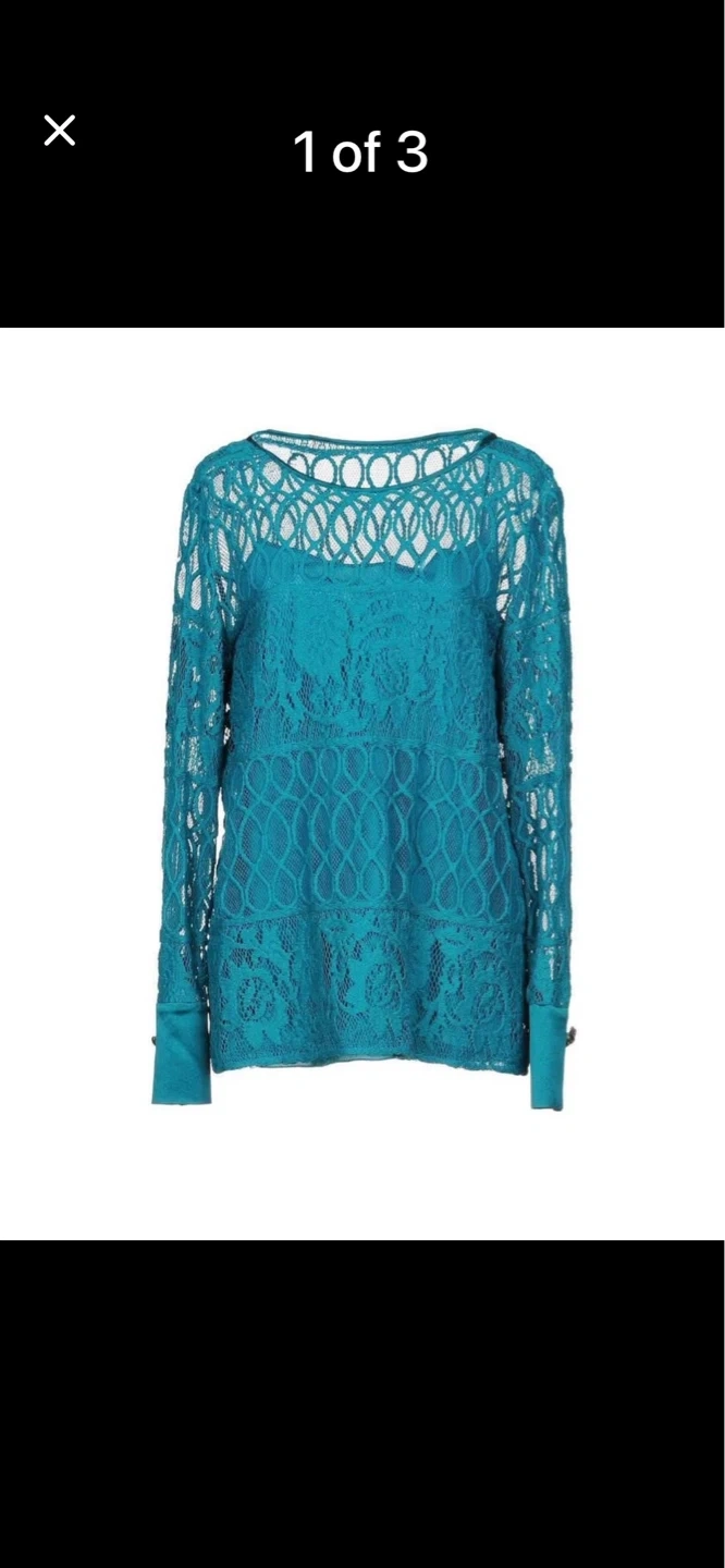Designer Alberta Ferretti Teal Lace Top with Inner Camisole